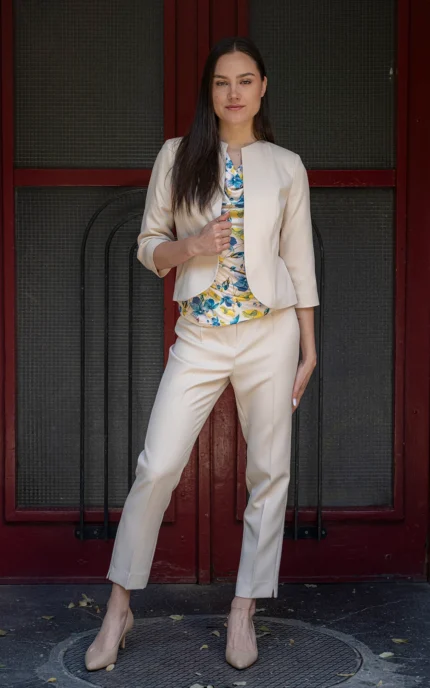 Original price was: 135,49 € / 265,00 лв..117,09 € / 229,01 лв. Текущата цена е: 117,09 € / 229,01 лв..Дамски костюм от сако с едно копче и дамски панталон