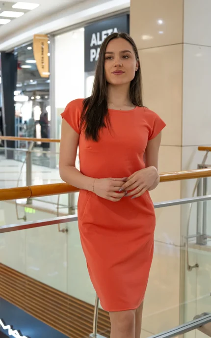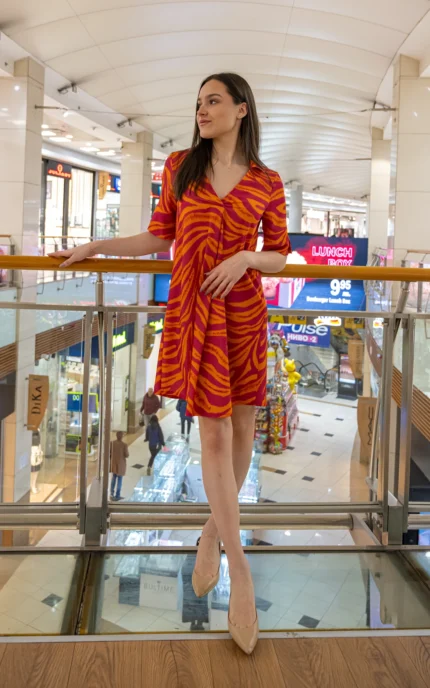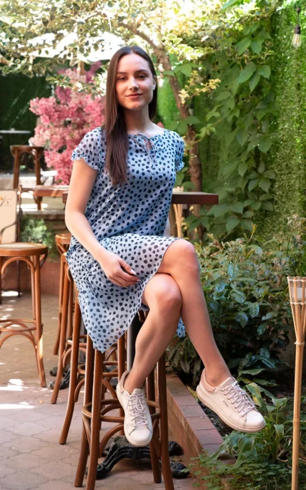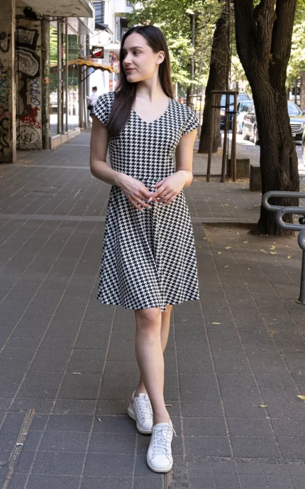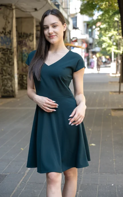 Трикотажна дамска блуза с къс ръкав и „гръцко” деколте