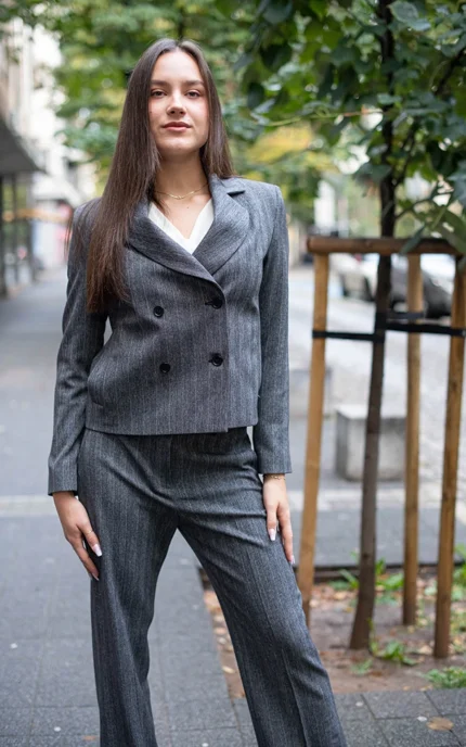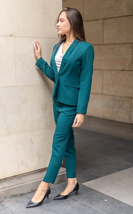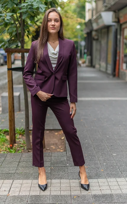 Дамски костюм от сако с едно копче и тесен панталон
