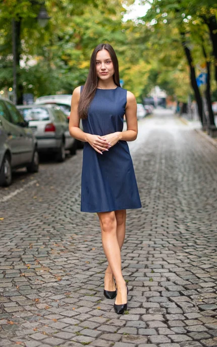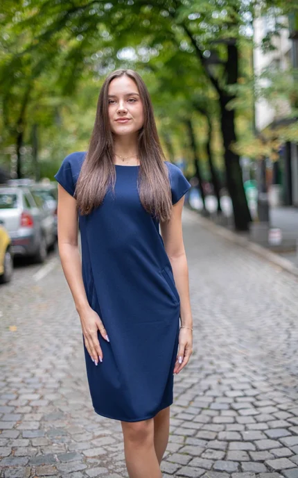 Дамска рокля с трапецовиден силует и джобове