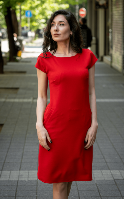 Ретро рокля с джобове и трапецовиден силует
