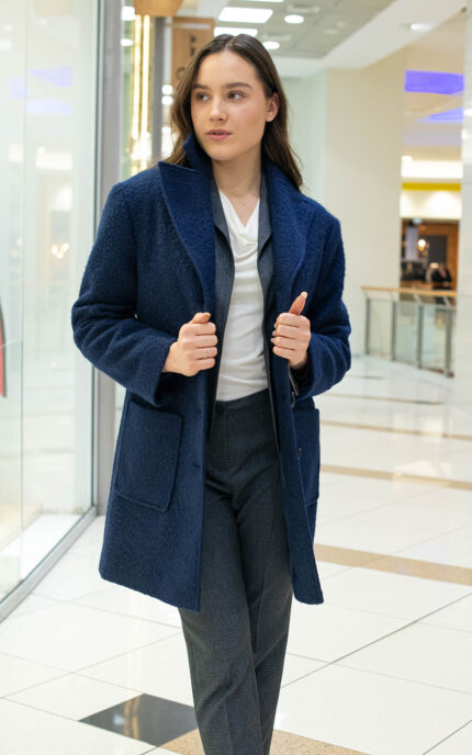 Късо дамско палто, цвят горчица – вълнено палто с елегантна линия