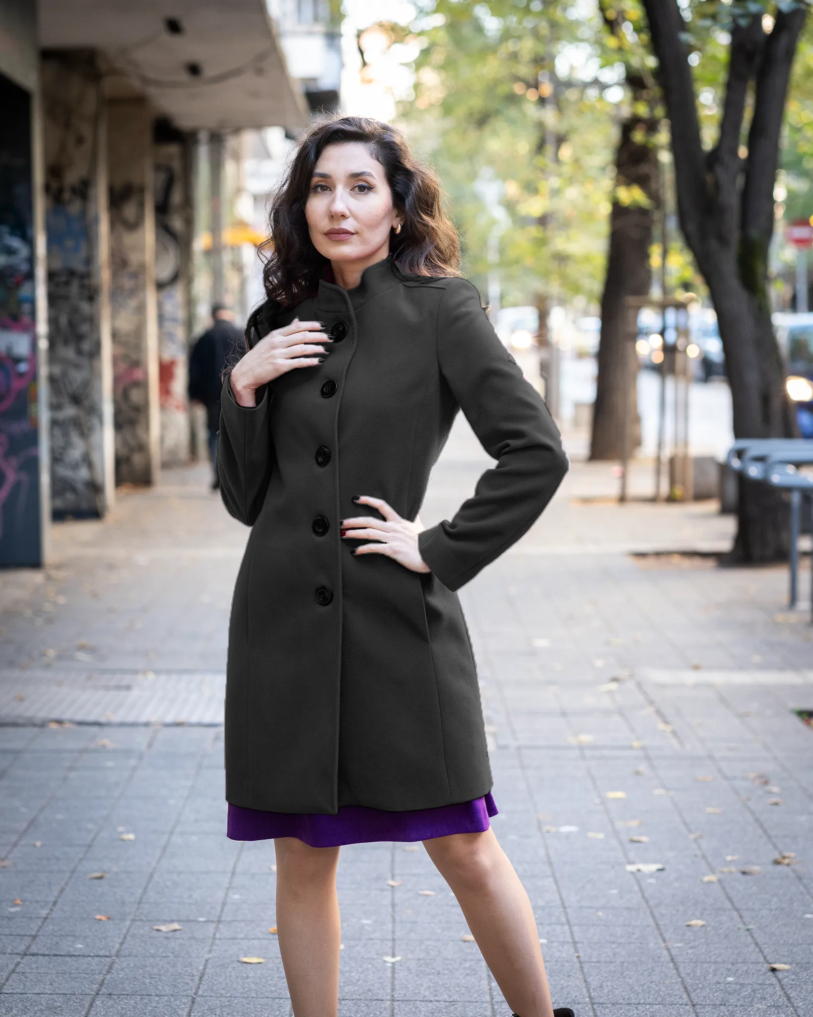 - Вталено право палто, със столче яка, модел 644-5 (черно)
