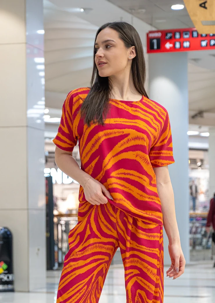 Трикотажна дамска блуза с къс ръкав и „гръцко” деколте