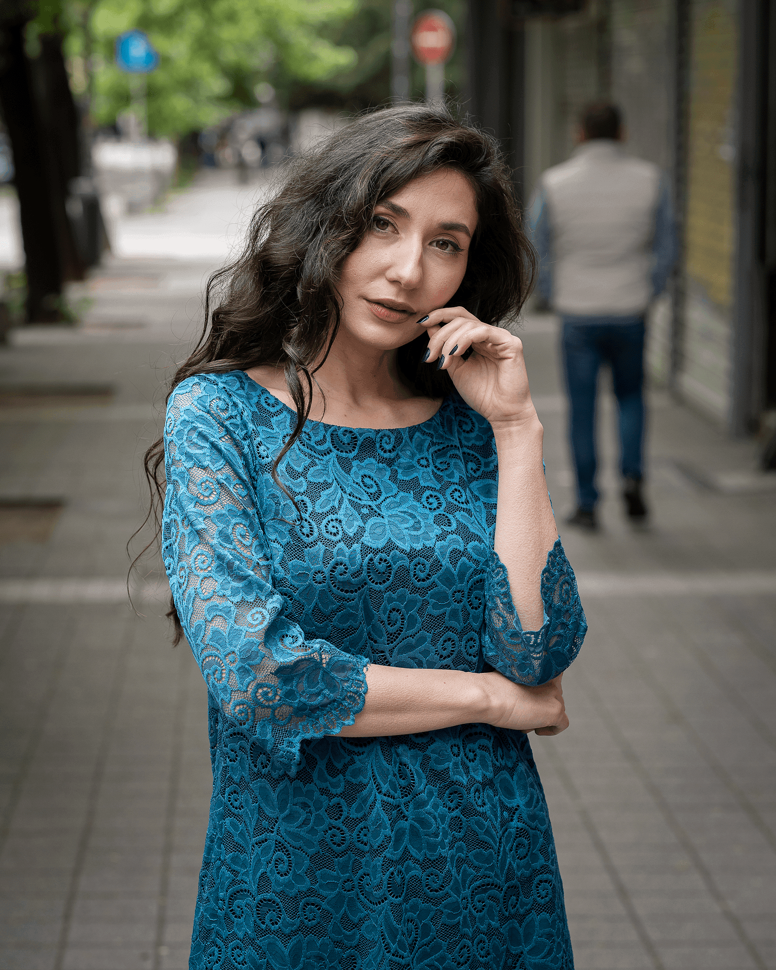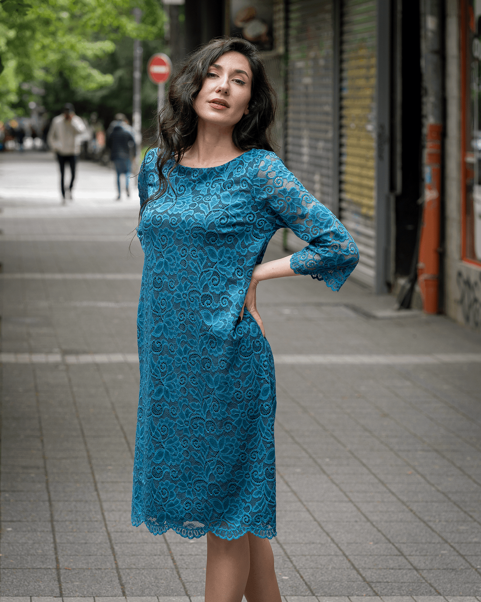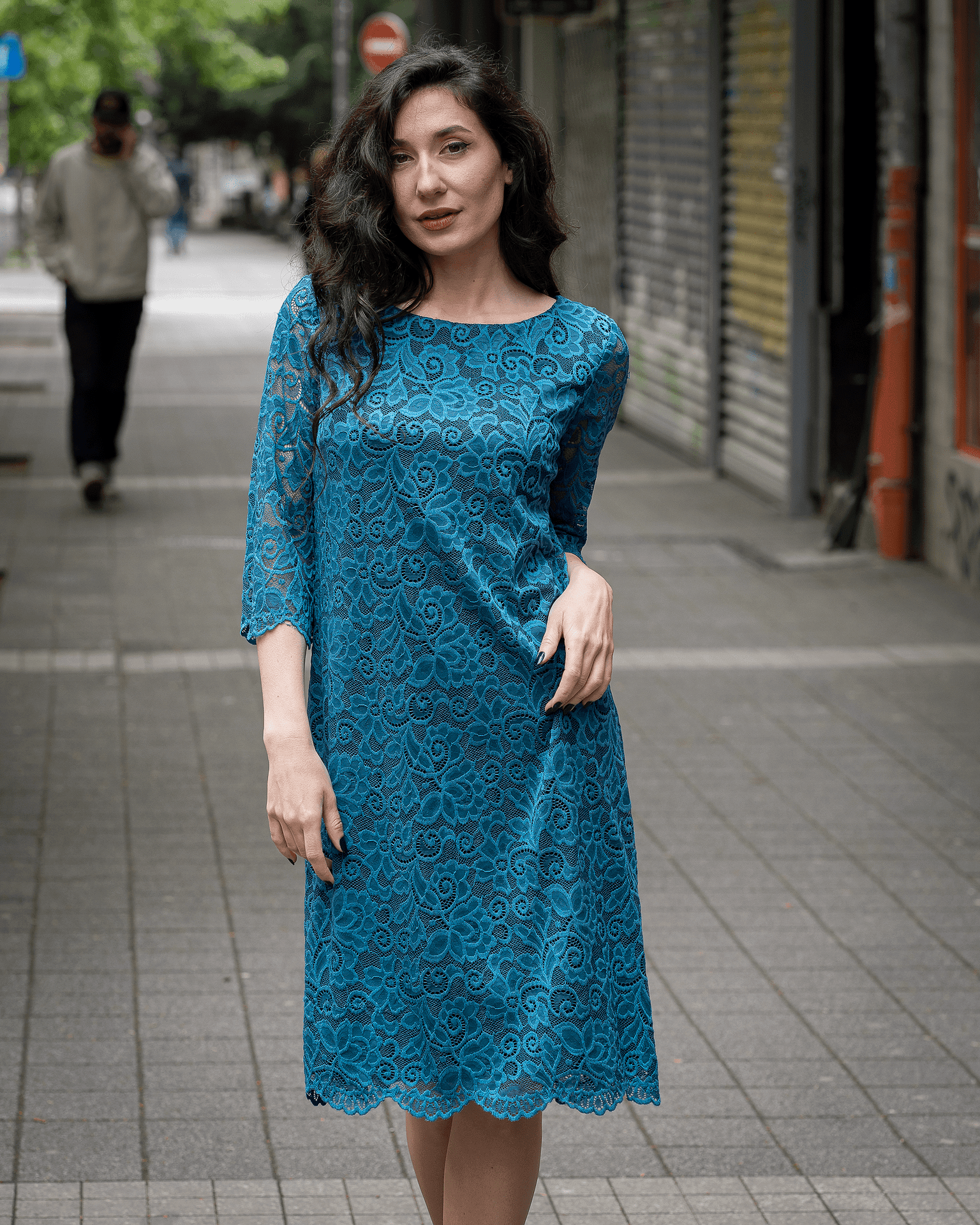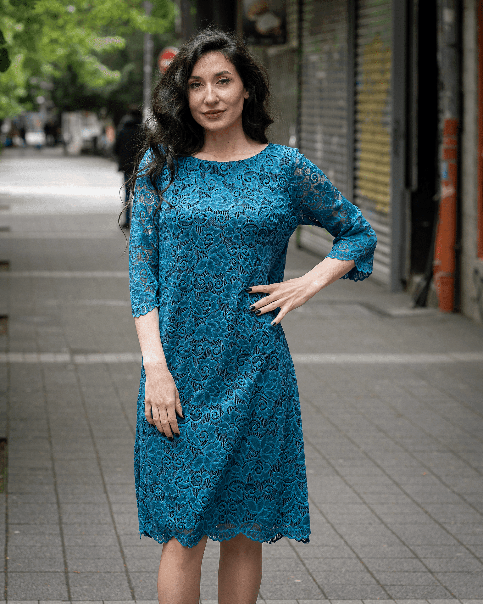 • Дамска рокля от дантела с 3/4 ръкав и цип