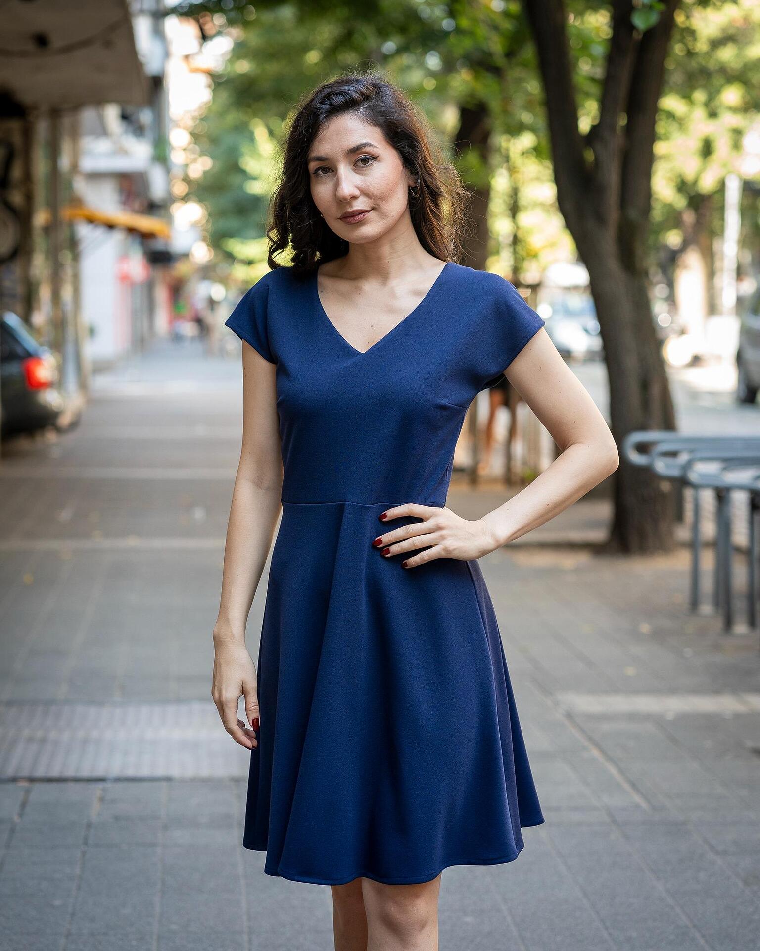 Дамска рокля с къс ръкав и малки джобчета
