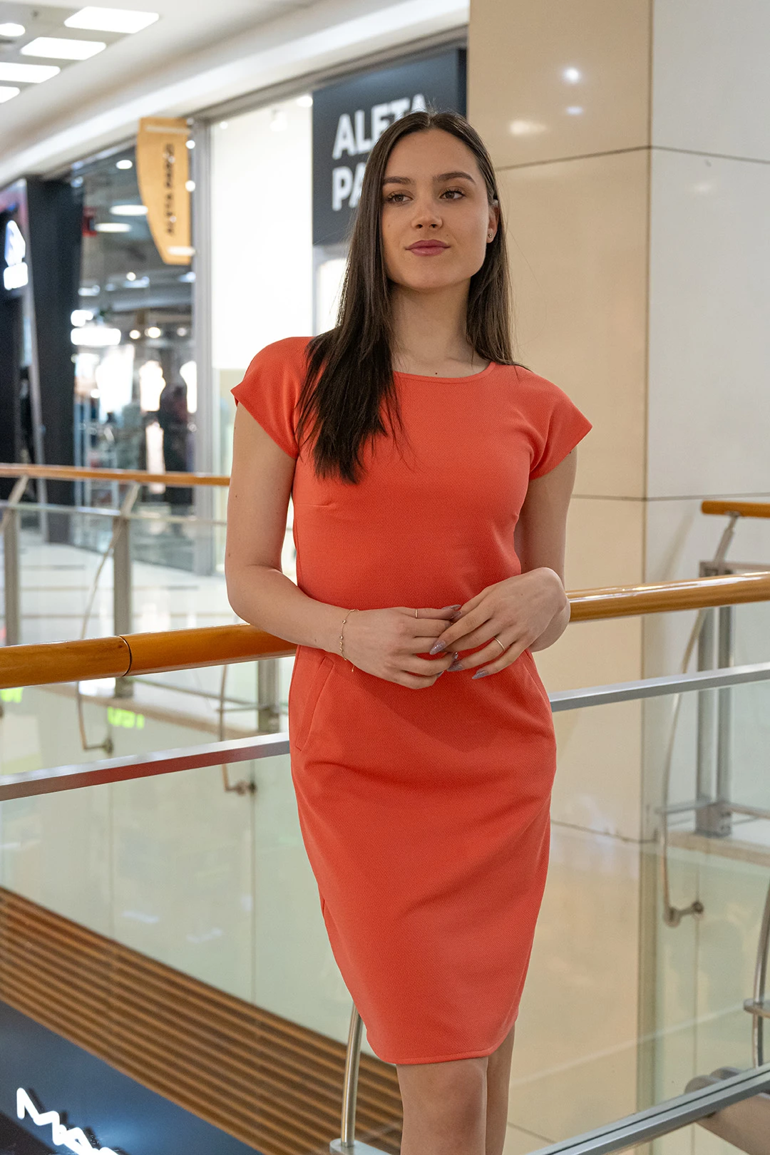 Дамска рокля с трапецовиден силует и джобове