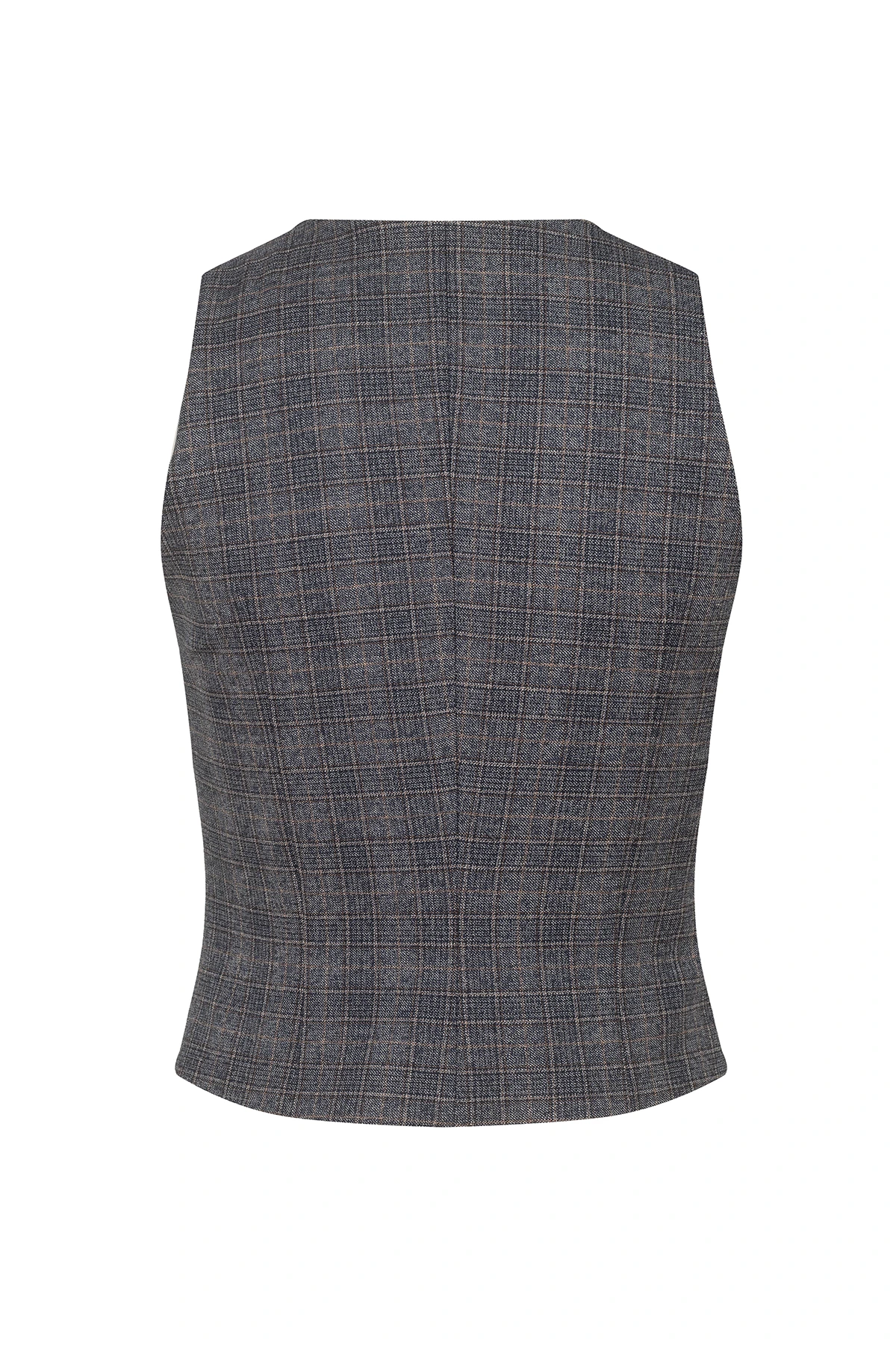 Дамски елек синьо каре – стилен елек с модерна кройка