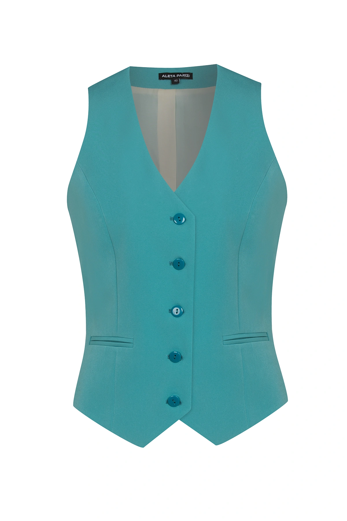 Поръчай дамски тюркоазен елек 807-5 онлайн с доставка за цяла България от Aleta Parizi.