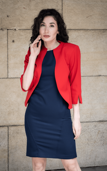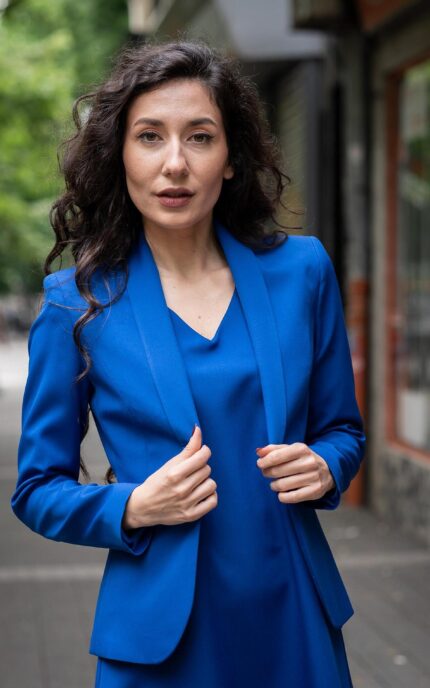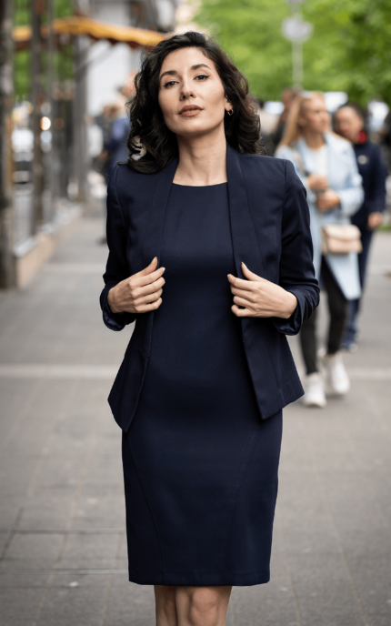 Дамски костюм от Вталено спортно сако и Вталена женствена рокля