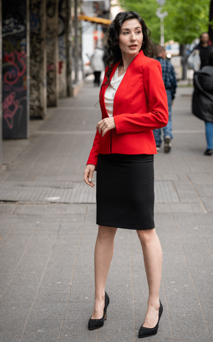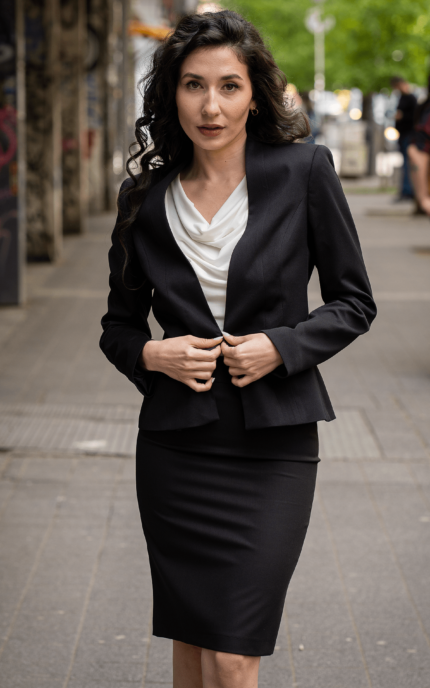 130,38 € / 255,00 лв.Дамски костюм от сако с едно копче и класическа права пола