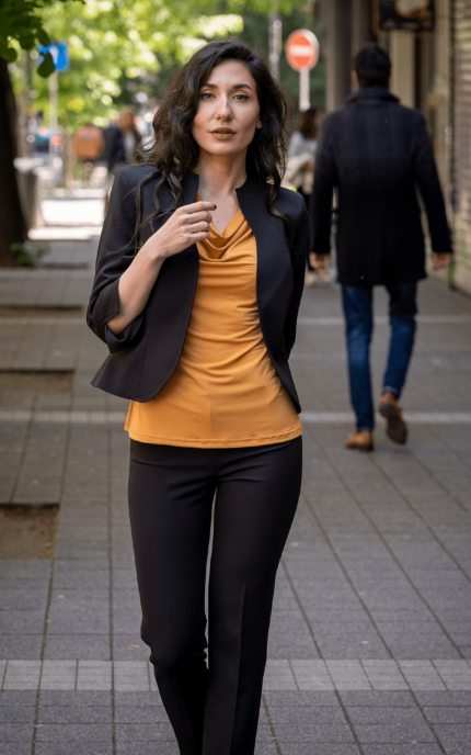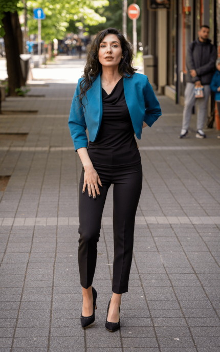 Дамски костюм от женствено късо болеро и тесен дамски панталон