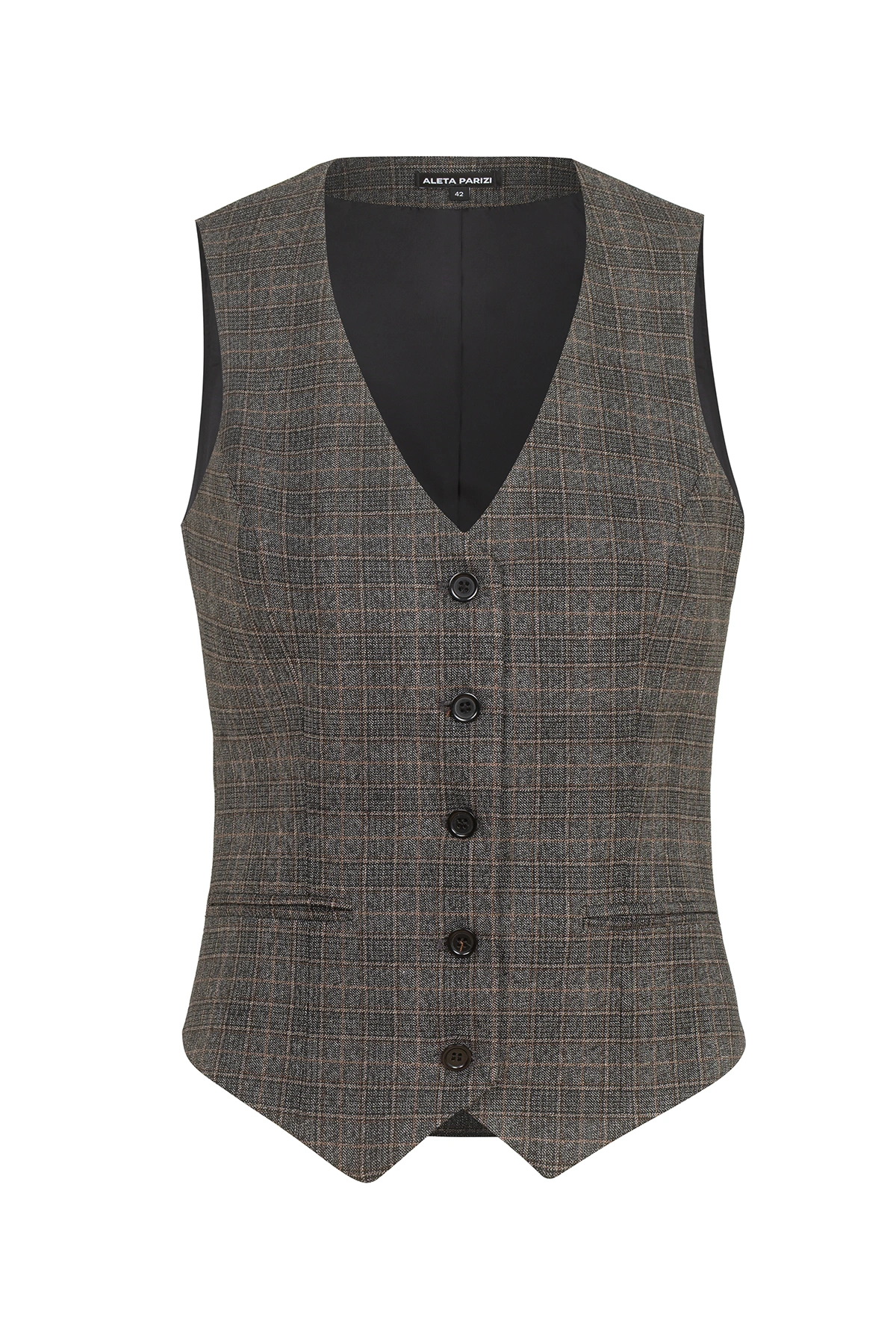 Придай характер на всяка визия с този елегантен дамски елек модел 807-2 в кафяво каре – съчeтание от класика, модерна линия и безупречна изработка.