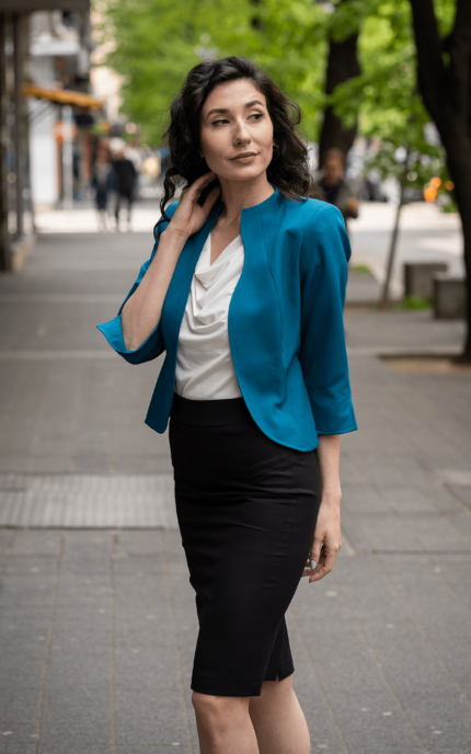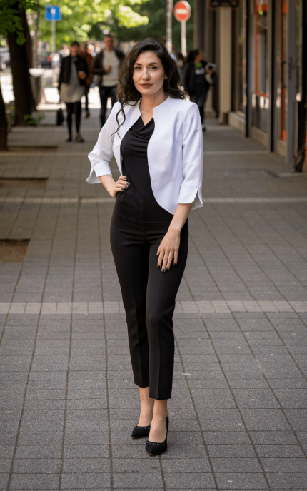 Дамски костюм от женствено късо болеро и тесен дамски панталон