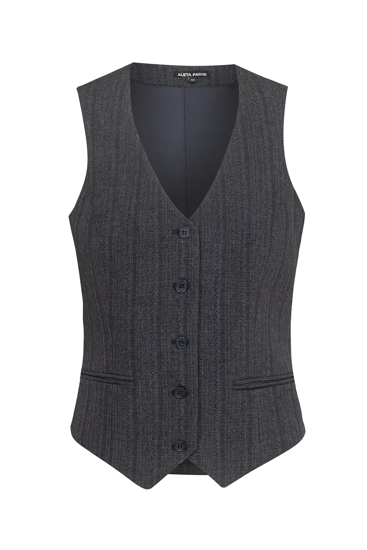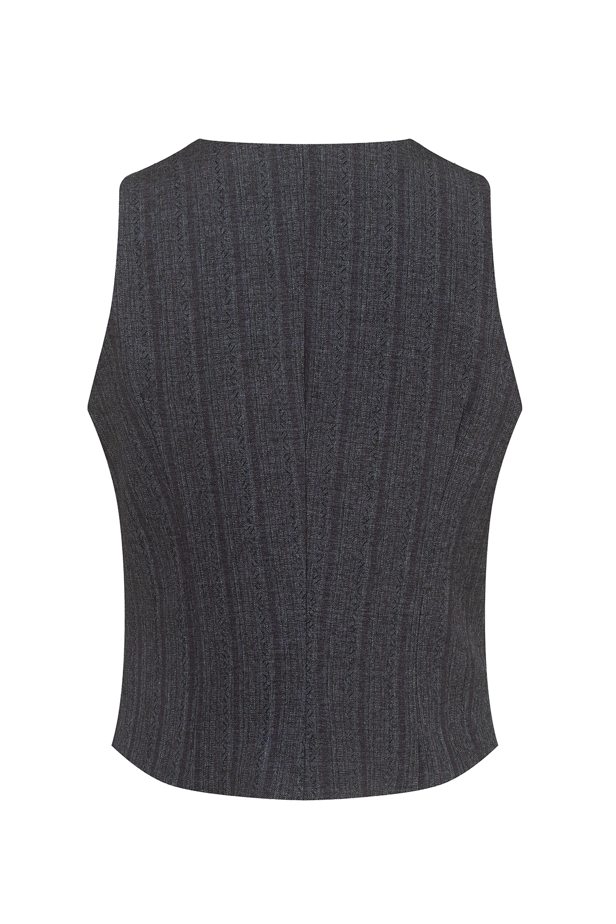 Изчистените линии, фините райета и внимателно изработеният силует превръщат този елек в универсален избор – носи го с риза за офис визия и премерена елегантност.