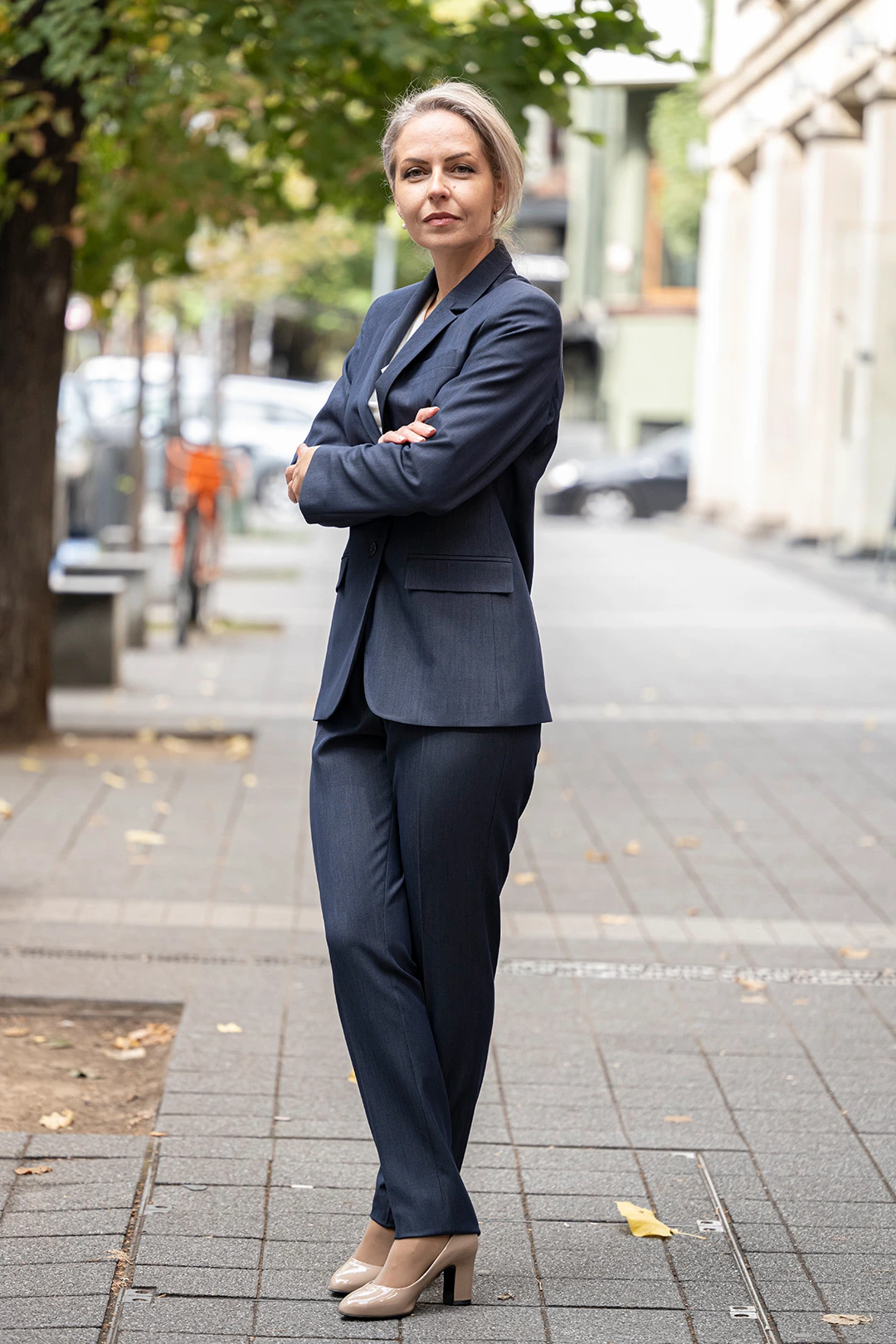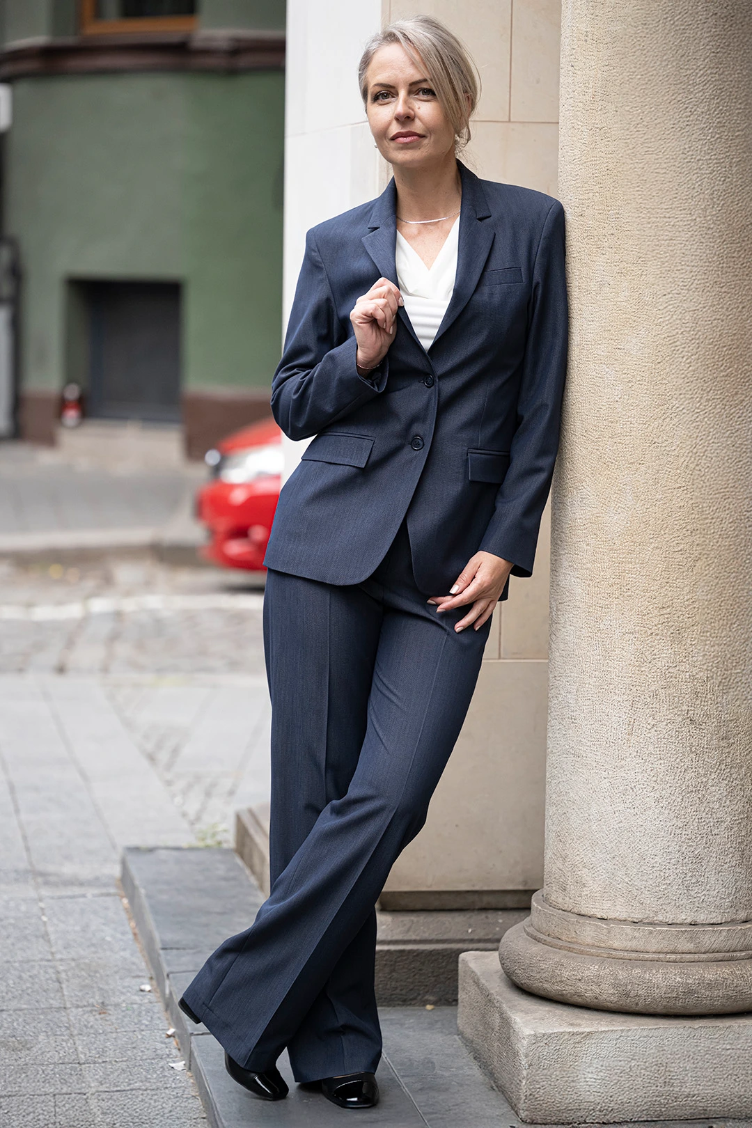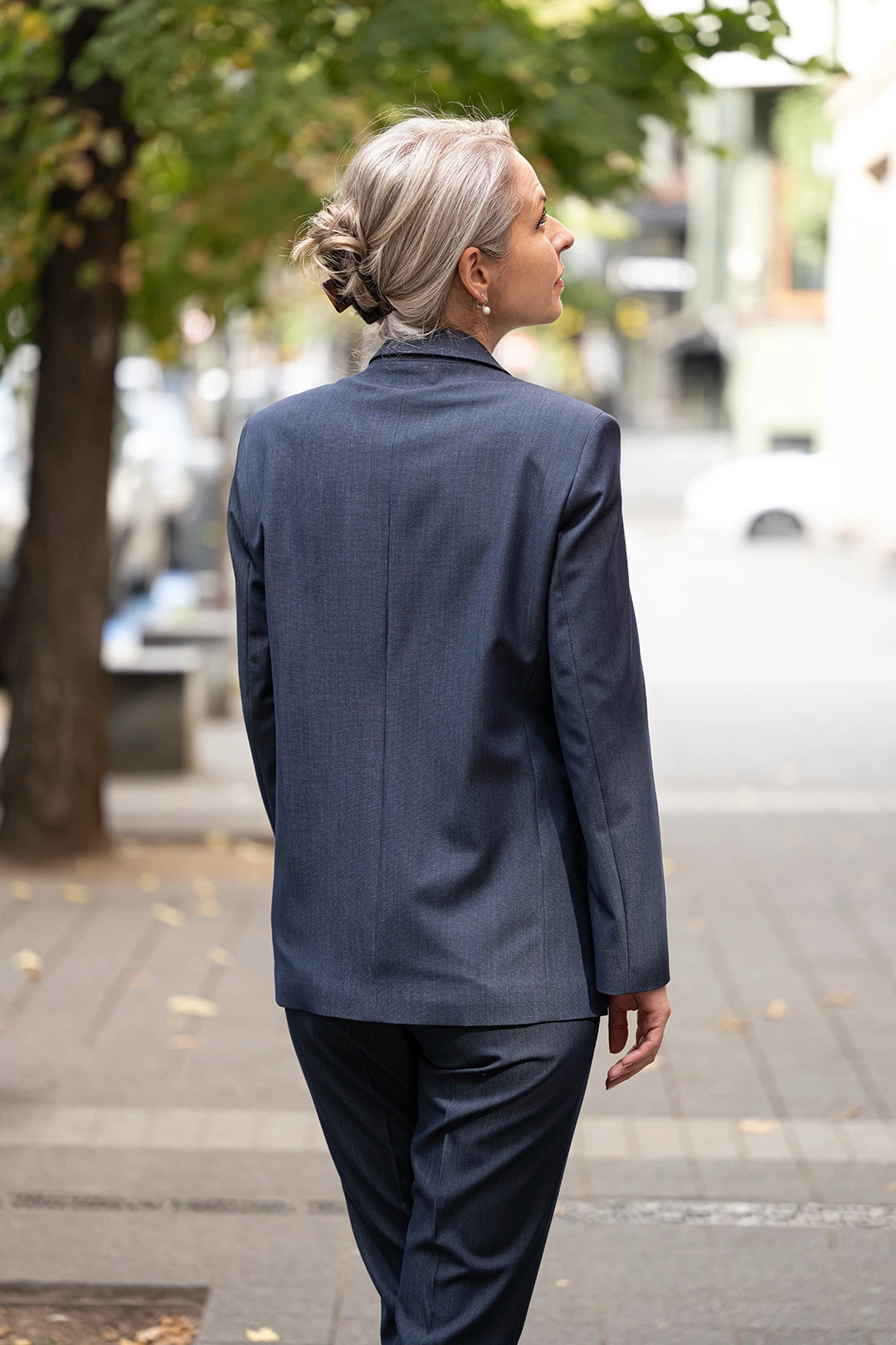 Комбинацията от сако и панталон оформя елегантен дамски костюм, който съчетава стил, функционалност и увереност. Перфектен избор за делова среда и специални случаи.