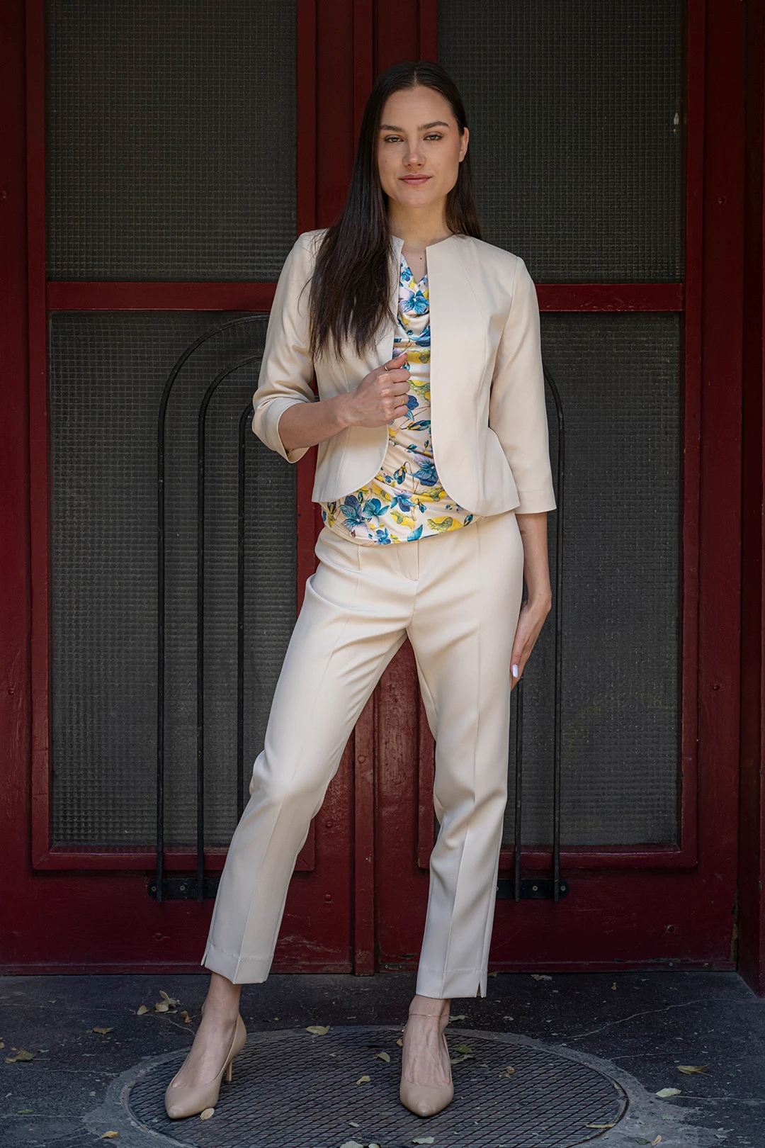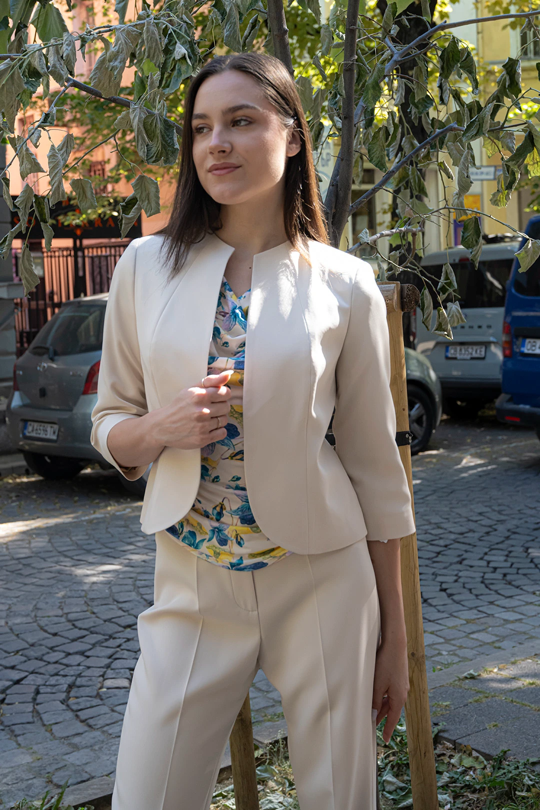 Дамски костюм от късо болеро без ревери и тесен дамски панталон