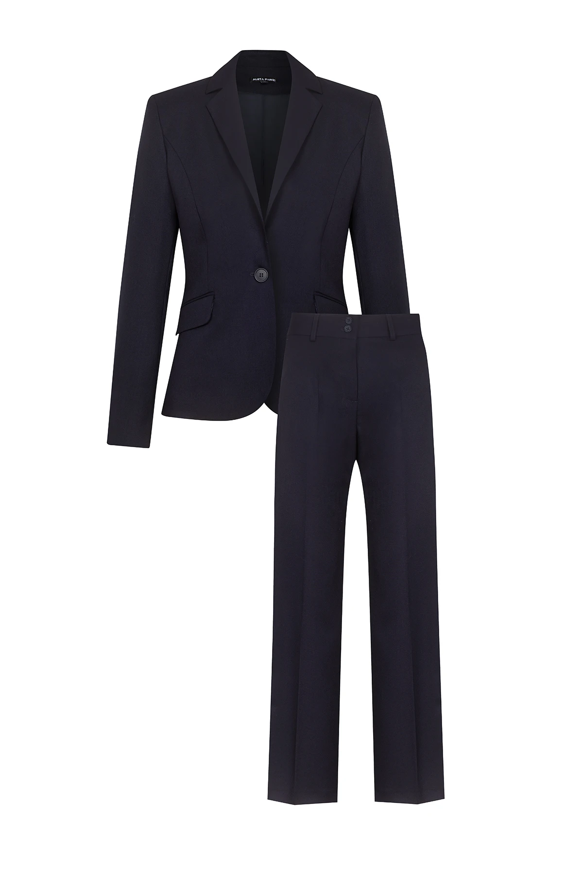 - Костюм от двуредно дамско сако и панталон с широк крачол