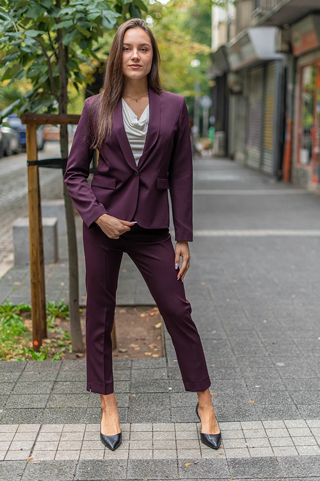 Дамски костюм от дамско сако с едно копче и тесен дамски панталон