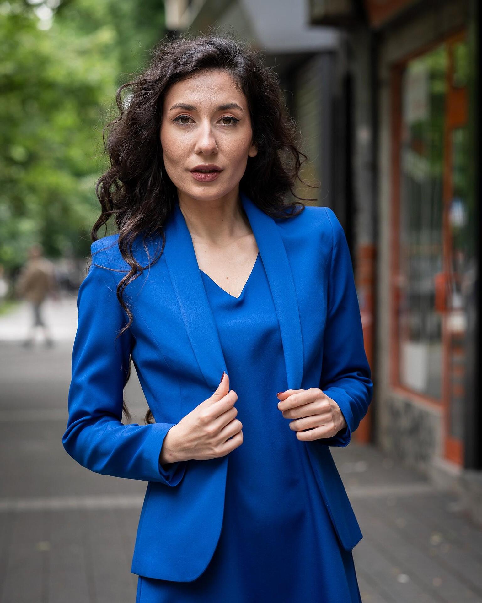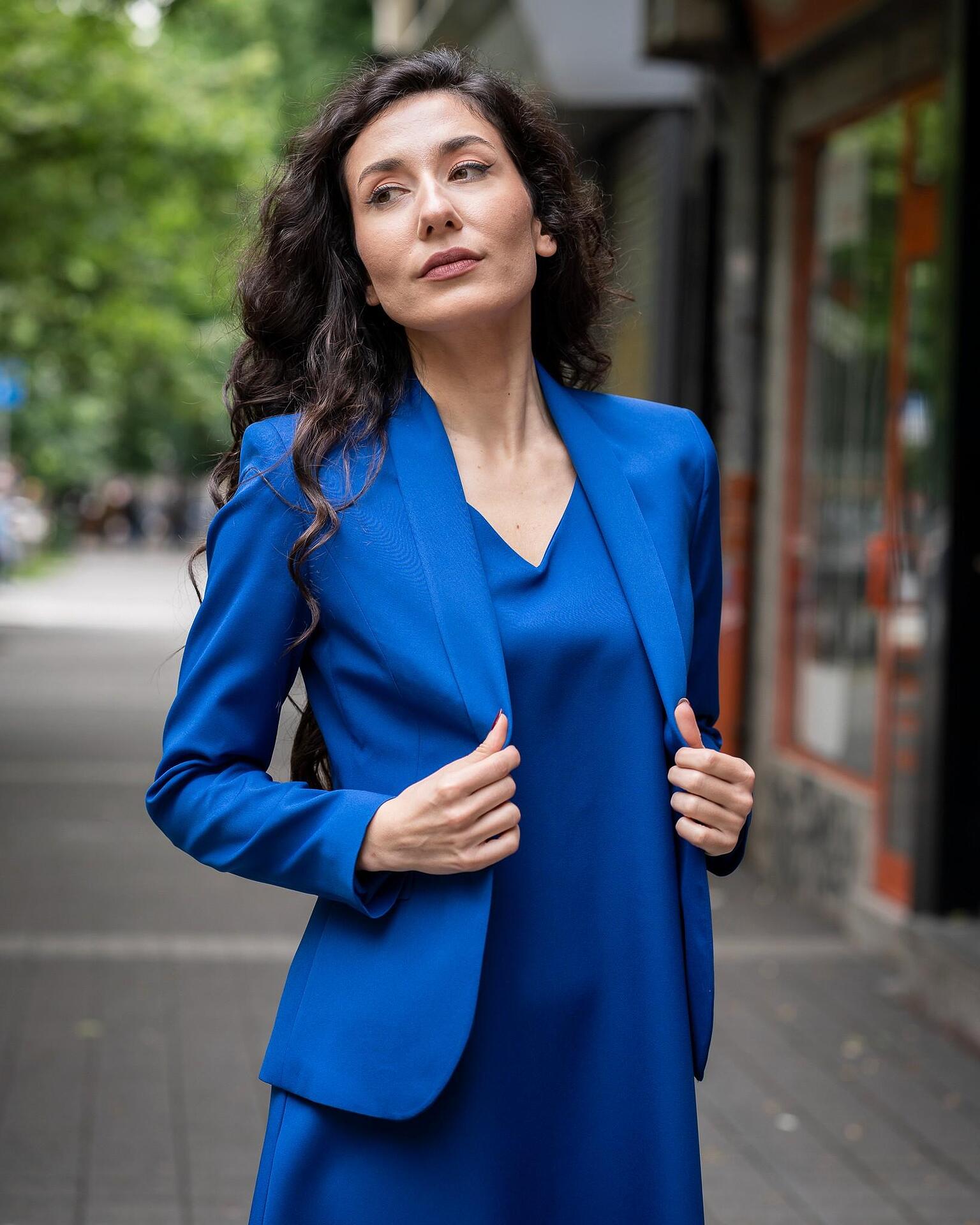 Дамски костюм от сако с едно копче и вталена женствена рокля