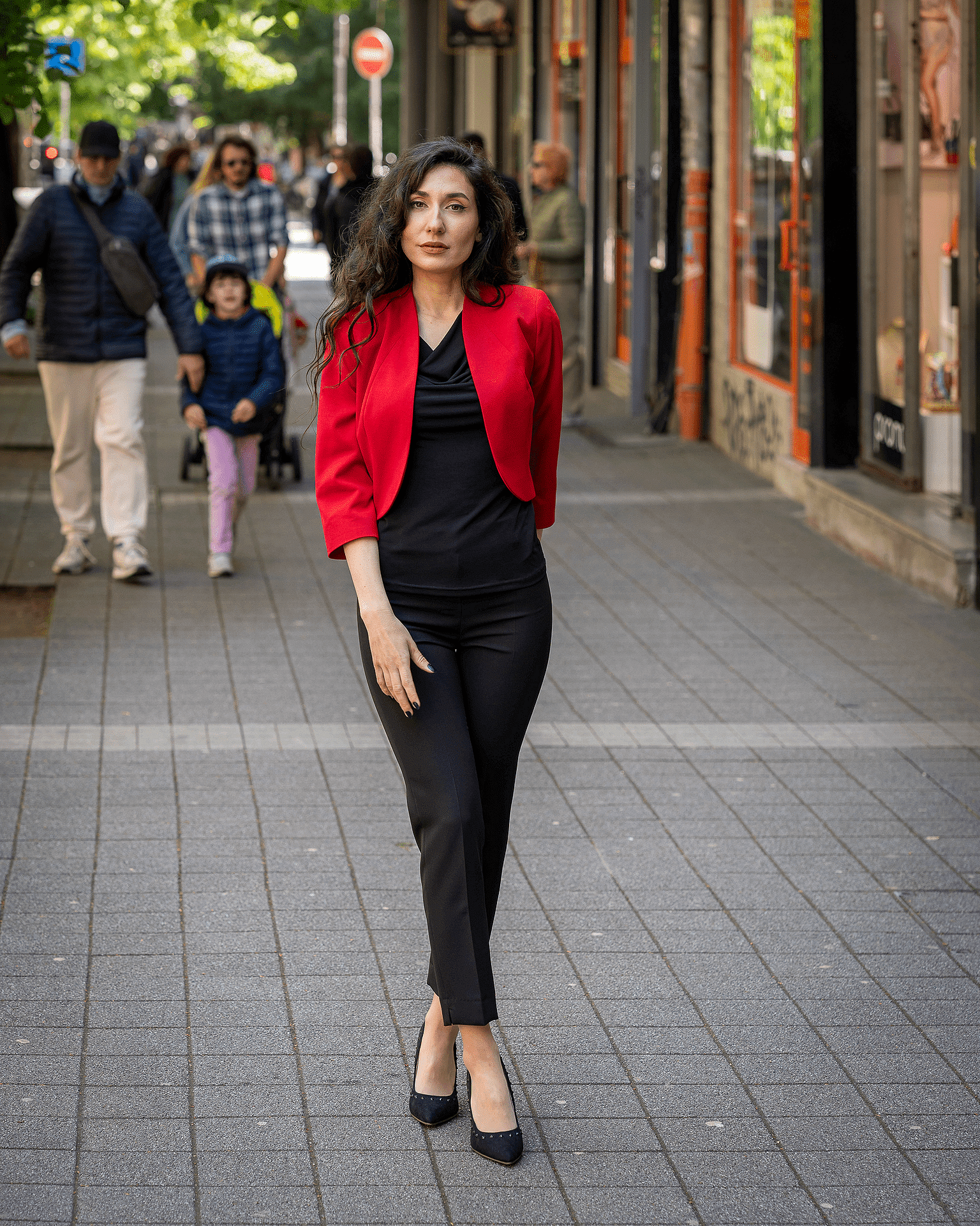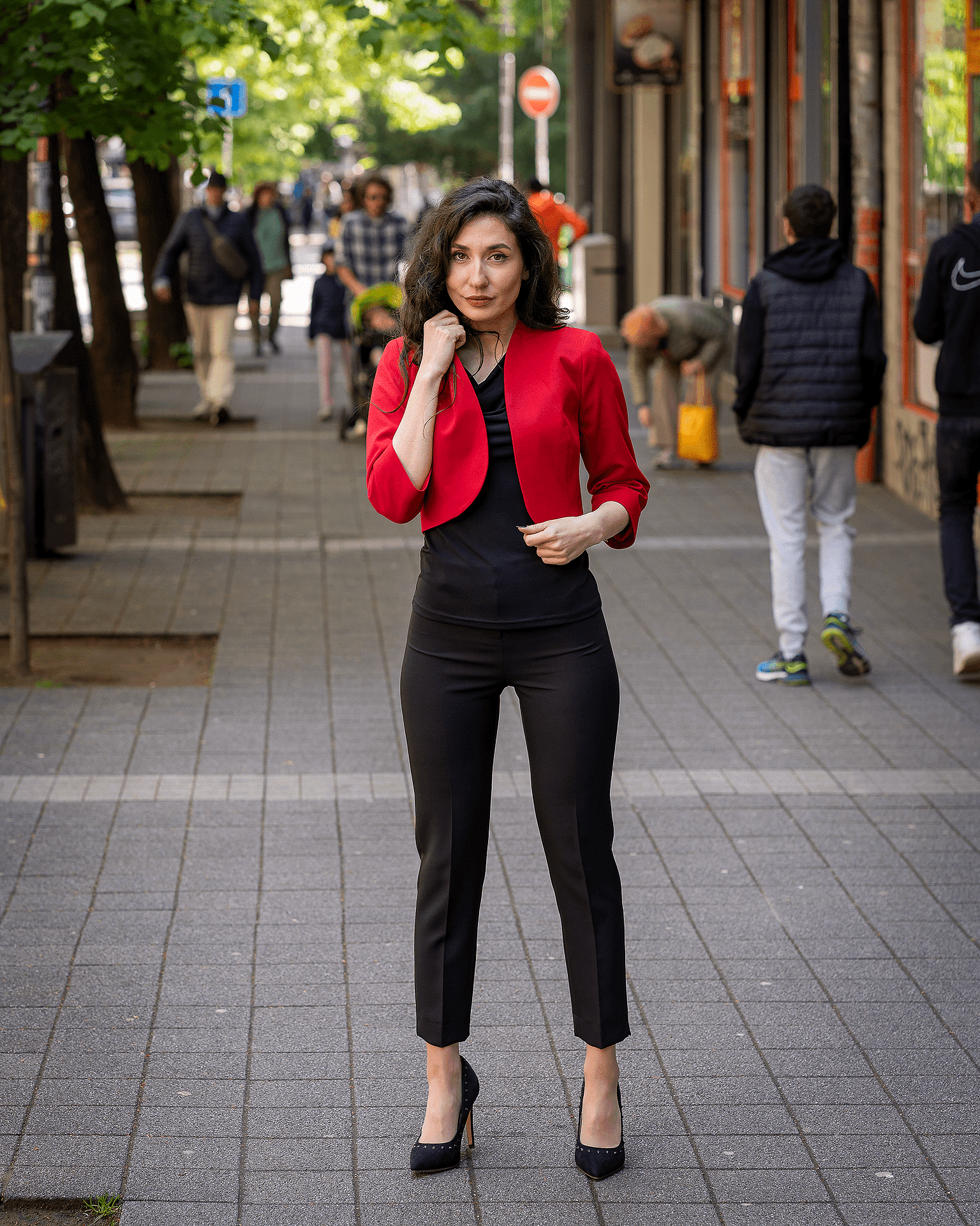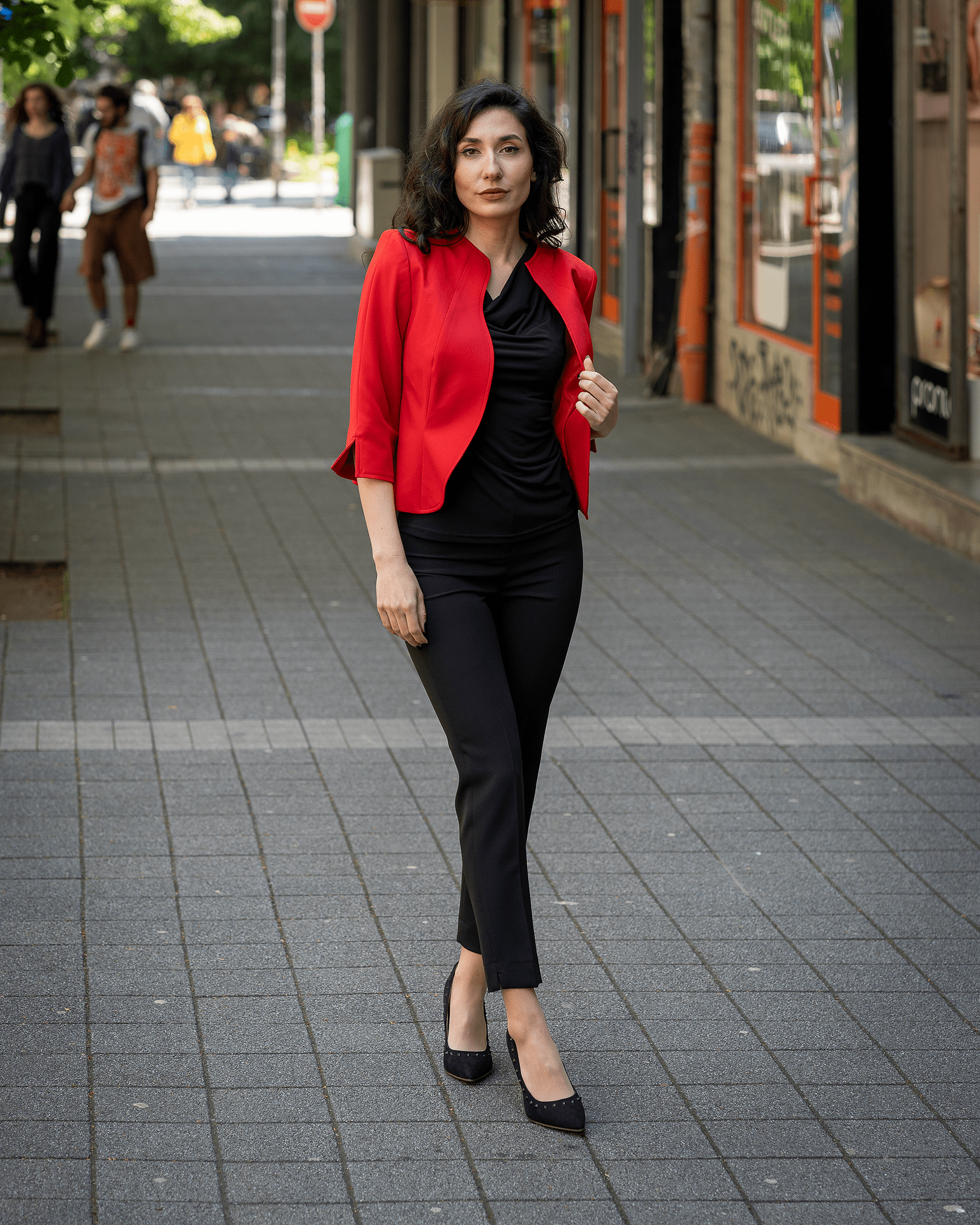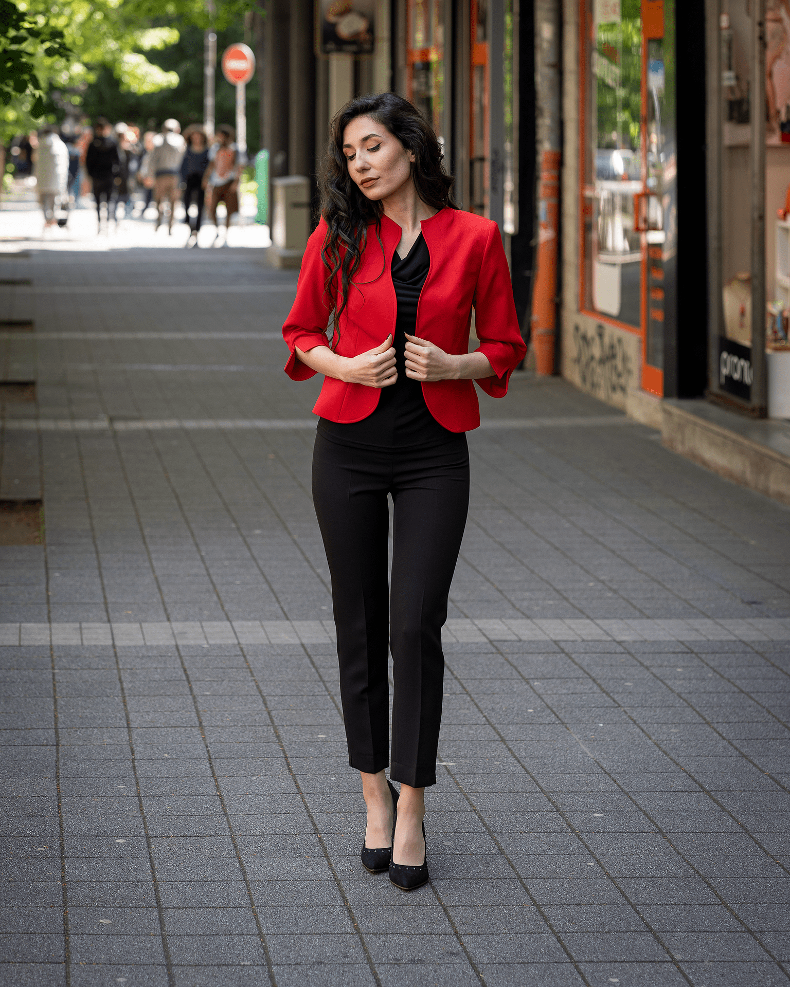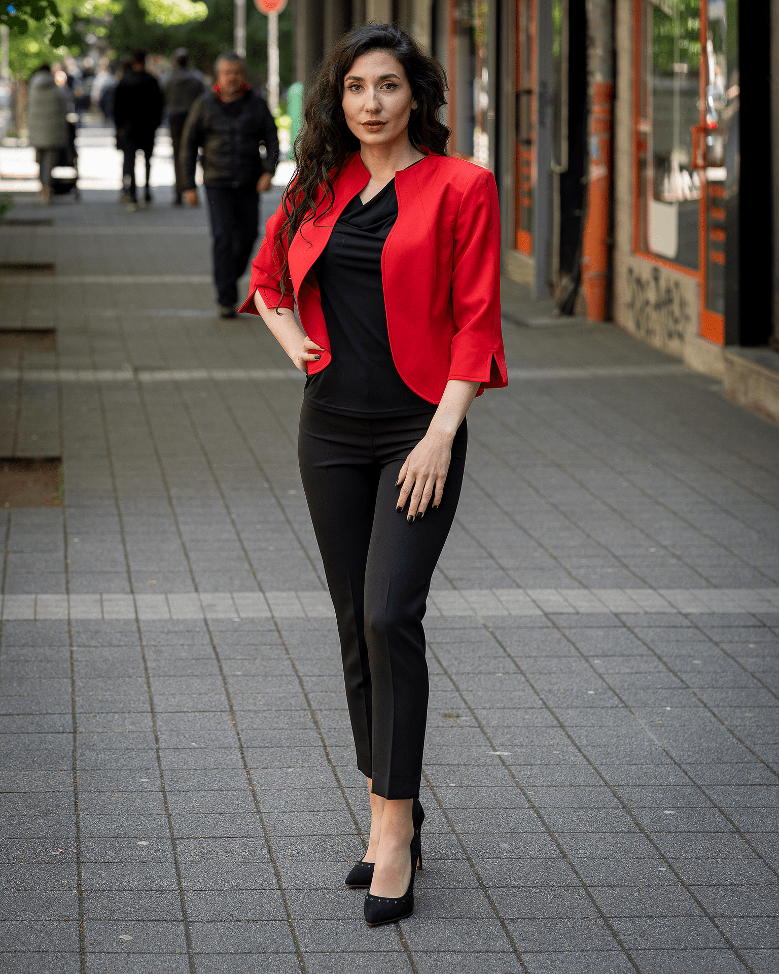 Дамски костюм от женствено късо болеро и тесен дамски панталон