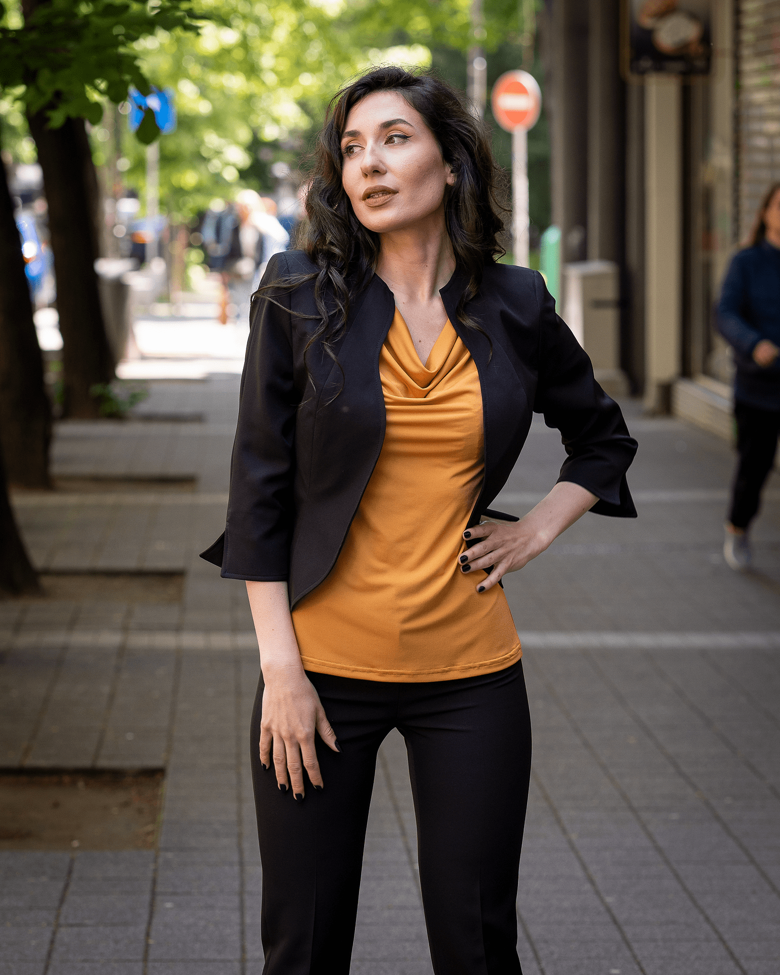 Дамски костюм от женствено късо болеро и тесен дамски панталон