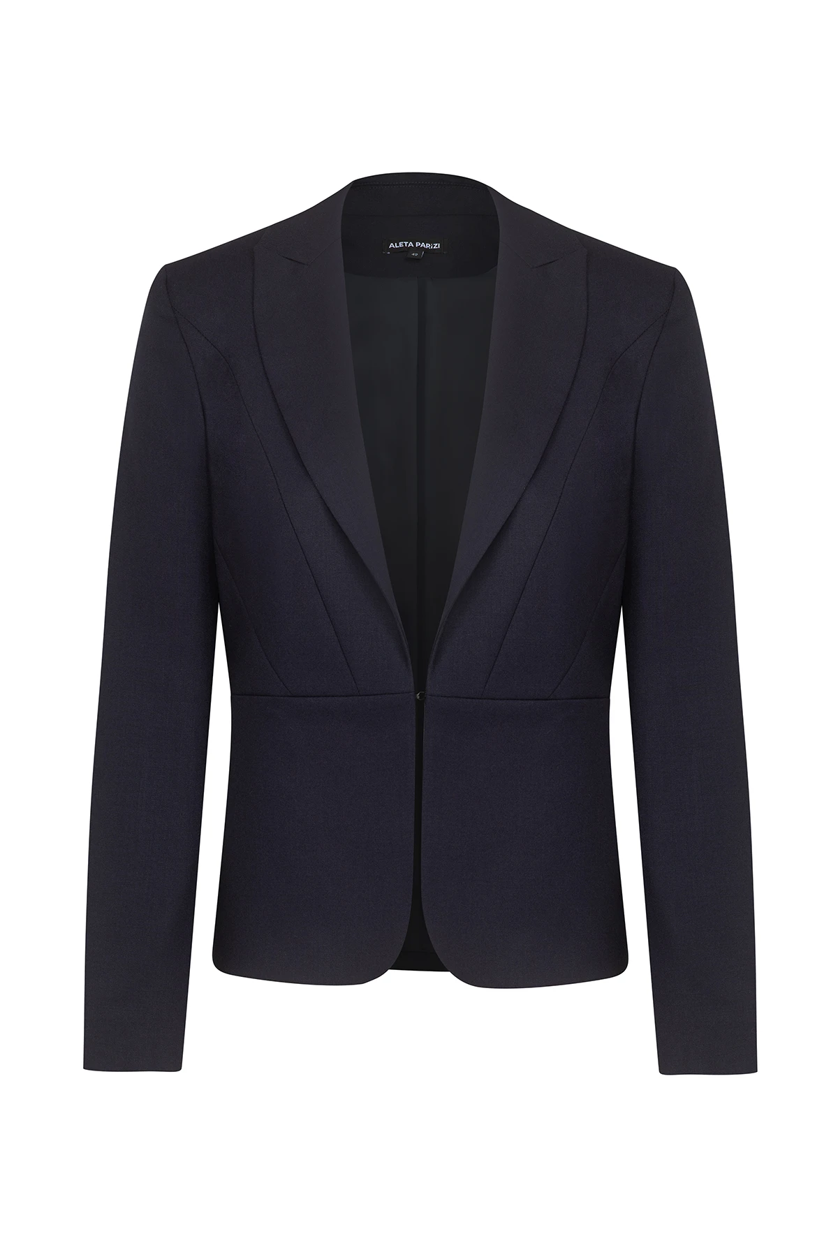 Сакото (модел 182-2) впечатлява с изчистена линия и фино срязване в талията, което оформя елегантен силует. Острият ревер подчертава класическата му визия, а платът с 38% вълна, 58% полиестер и 4% еластан осигурява комфорт и безупречна форма през целия ден.