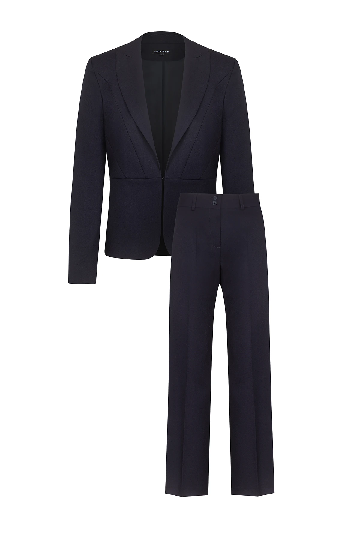 Изтънчен, съвременен и уверено женствен — дамският костюм от две части на Aleta Parizi комбинира вталено сако с остър ревер и широк панталон с висока талия, за да създаде перфектен баланс между професионална визия и комфорт.