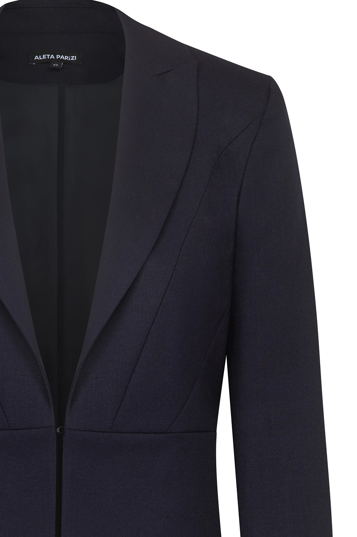 Сако: модел 182-2 (тъмносиньо) — 38% вълна, 58% полиестер, 4% еластан; хастар: 100% полиестер