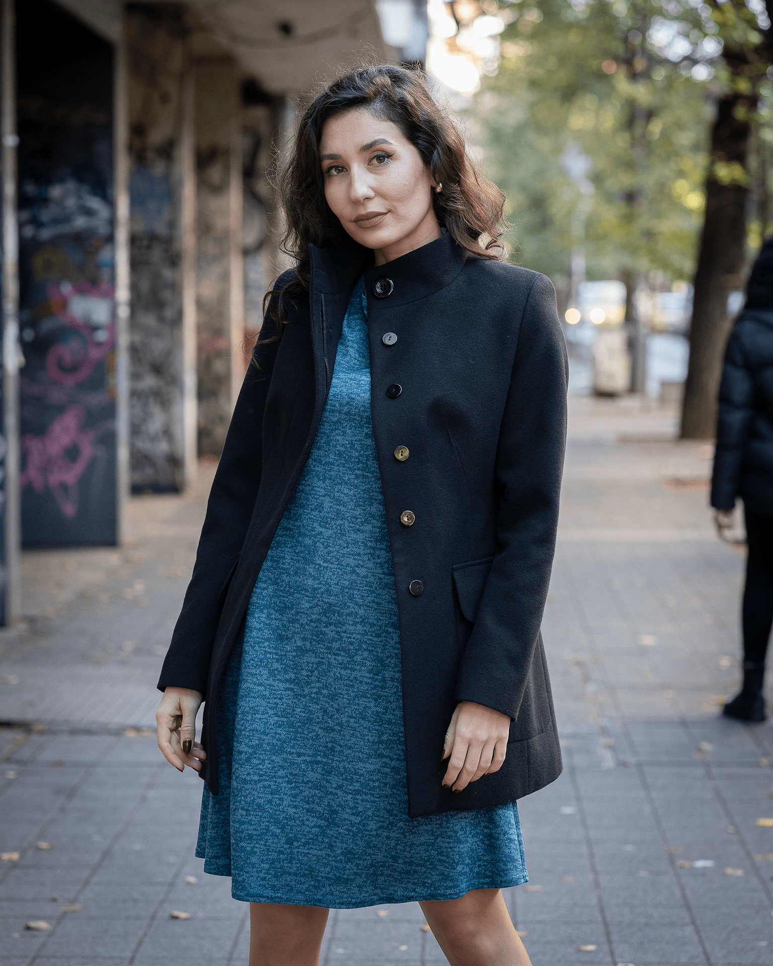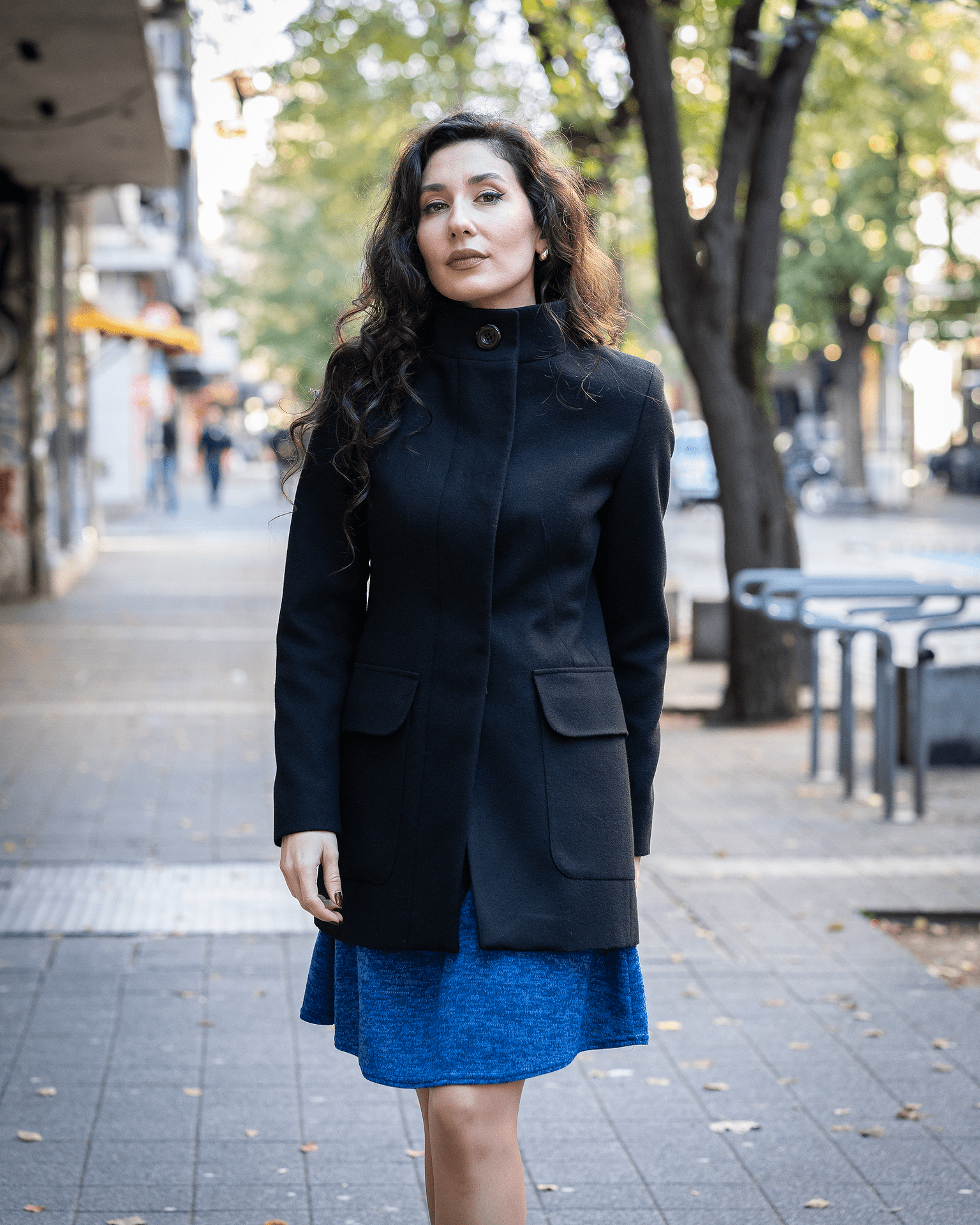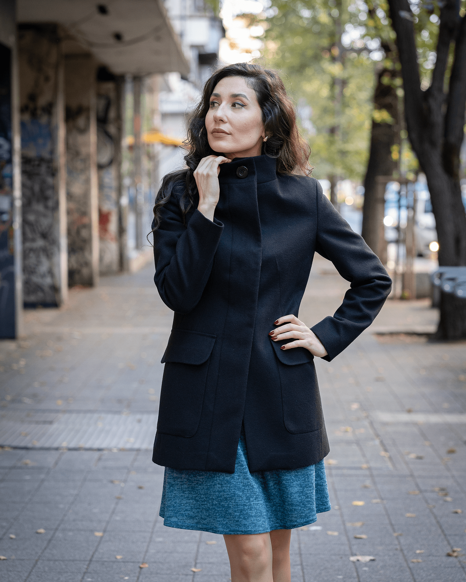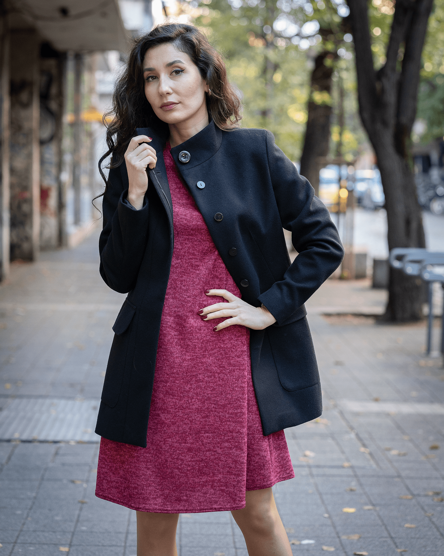Дамското палто модел 655-1 от Aleta Parizi впечатлява с модерен минимализъм и практична елегантност. Изчистената линия и вталената кройка подчертават фигурата, а големият външен джоб с капак добавя интересен акцент и функционалност.