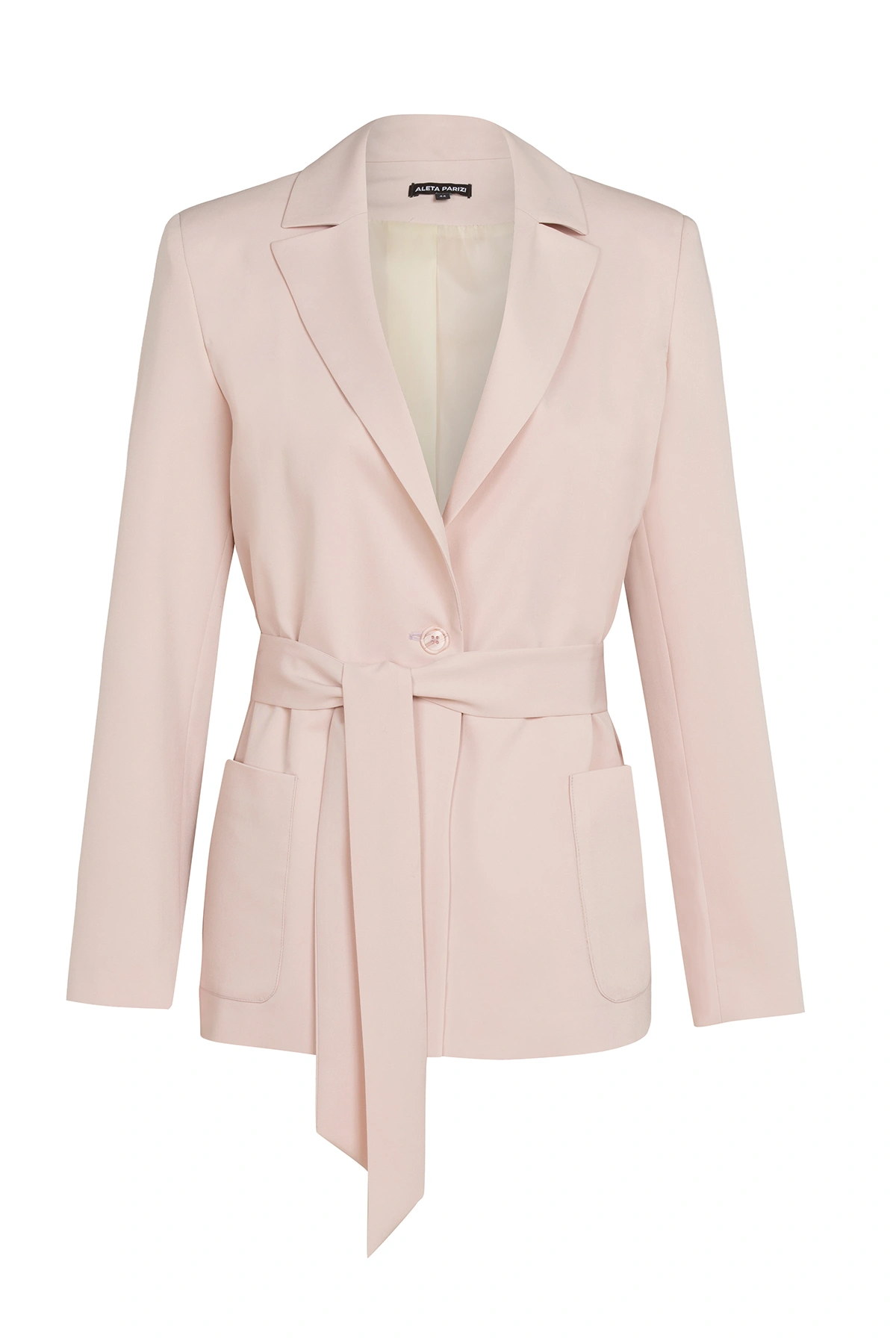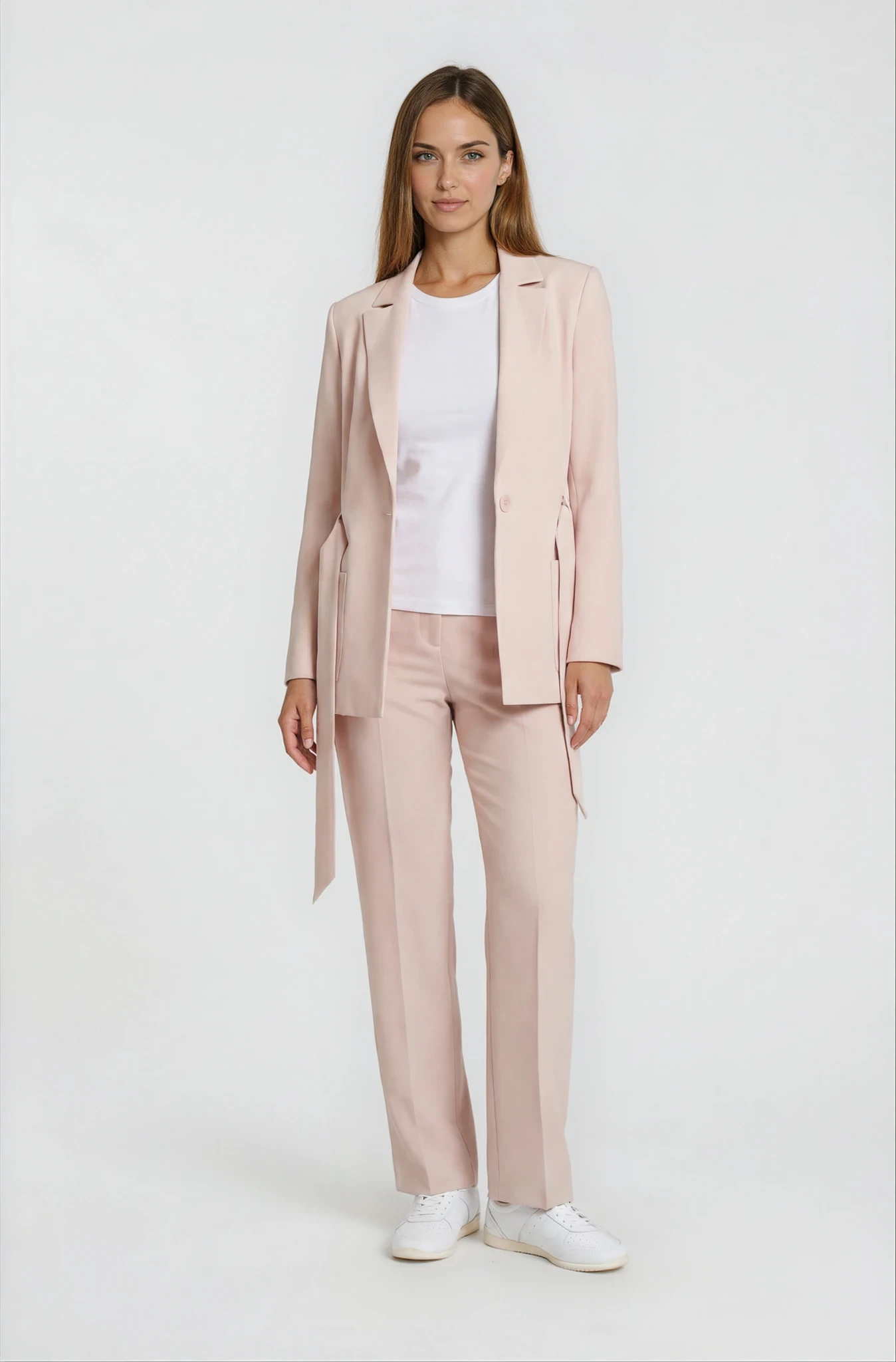 Дамско сако с колан 125-3 в пудра розово – женственост и елегантност без компромис