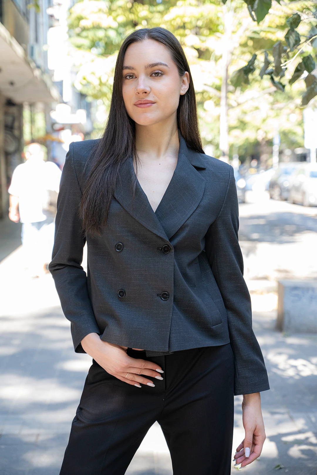 - Двуредно дамско сако с 3/4 ръкав с цепка