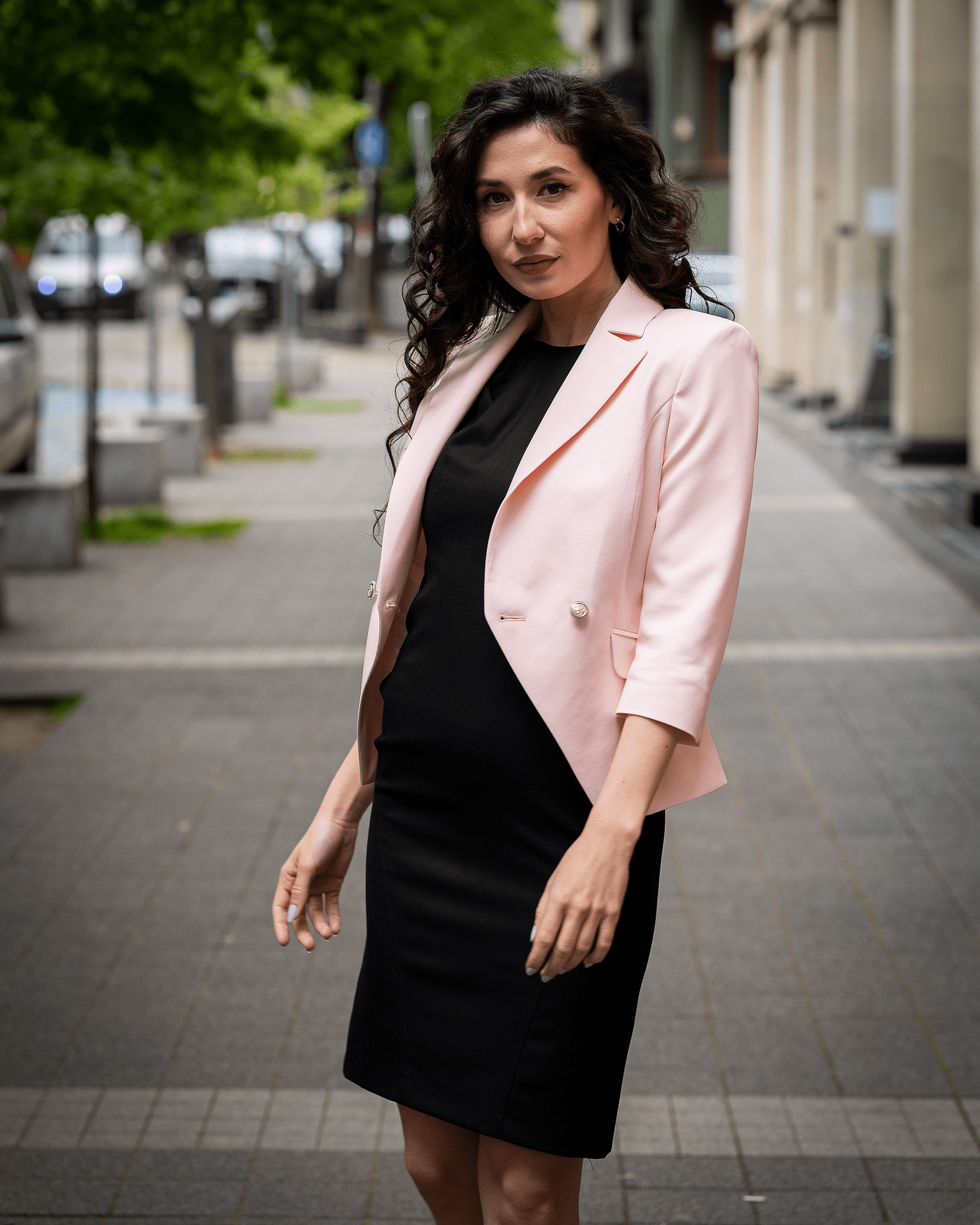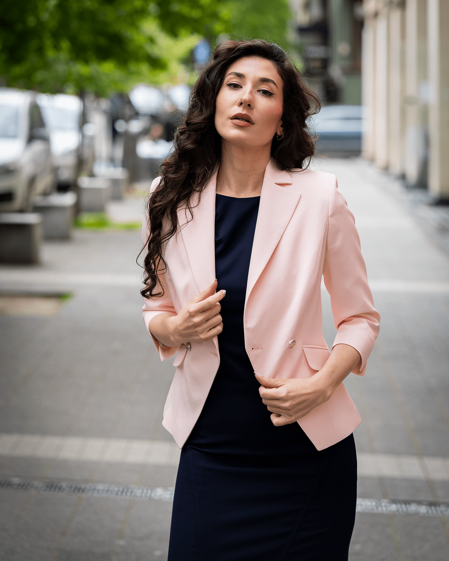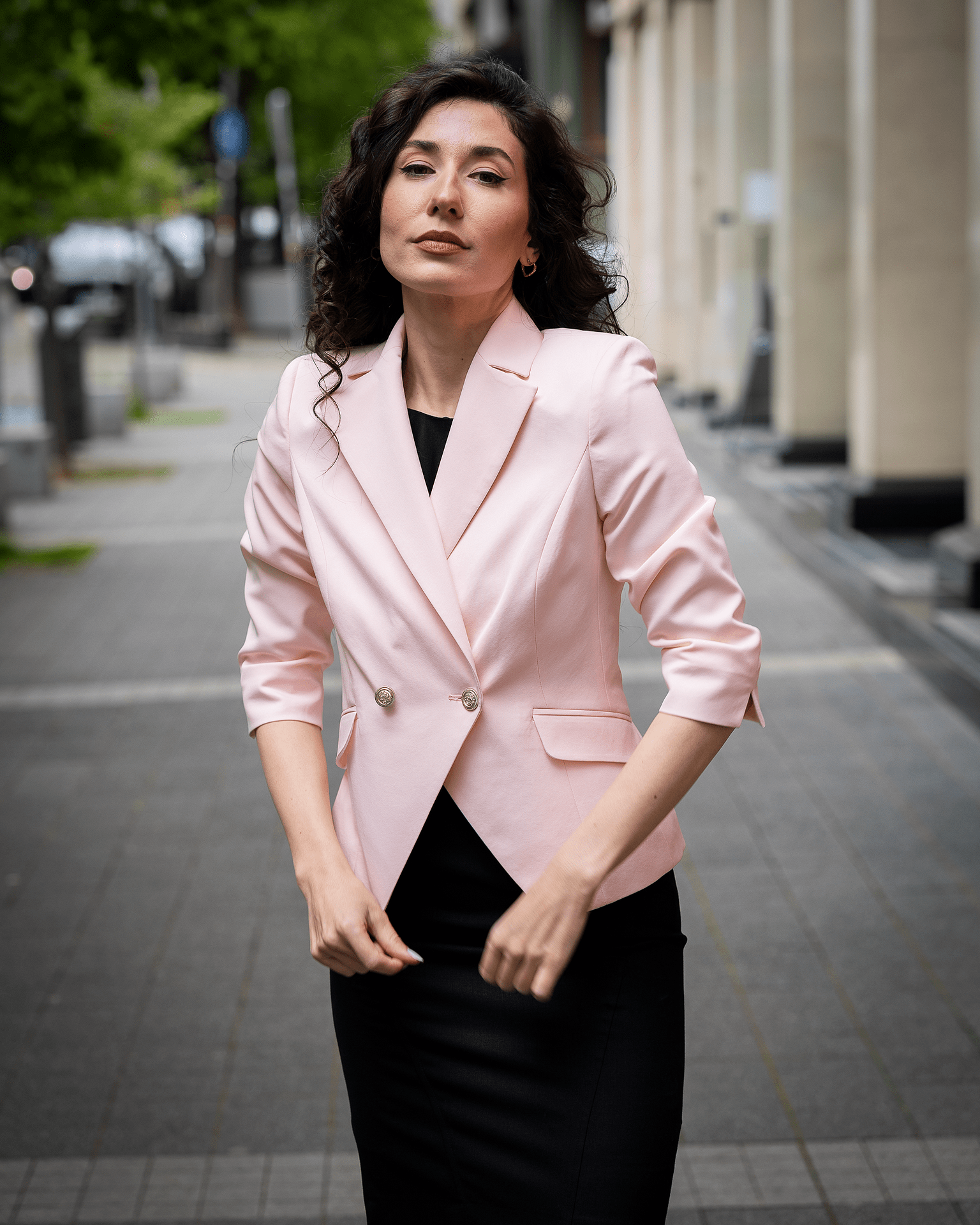 - Двуредно дамско сако с 3/4 ръкав с цепка