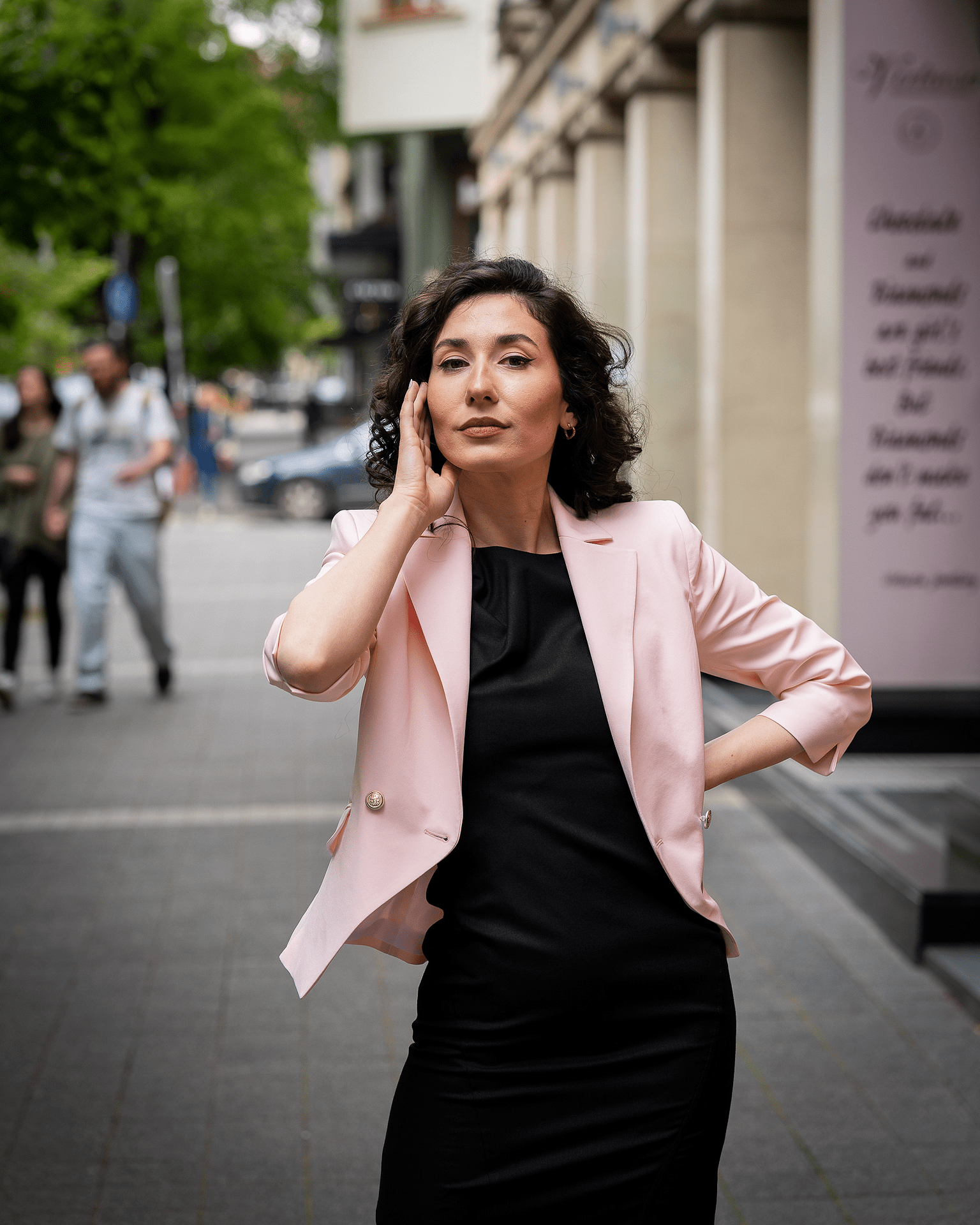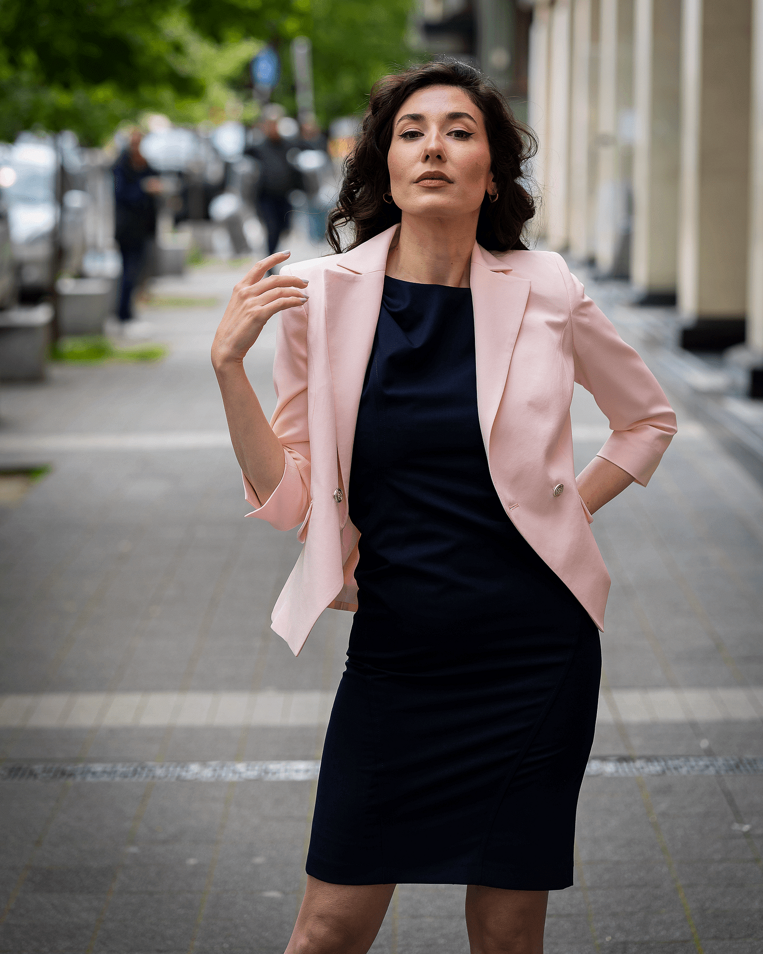 Вталено дамско сако с външни джобове