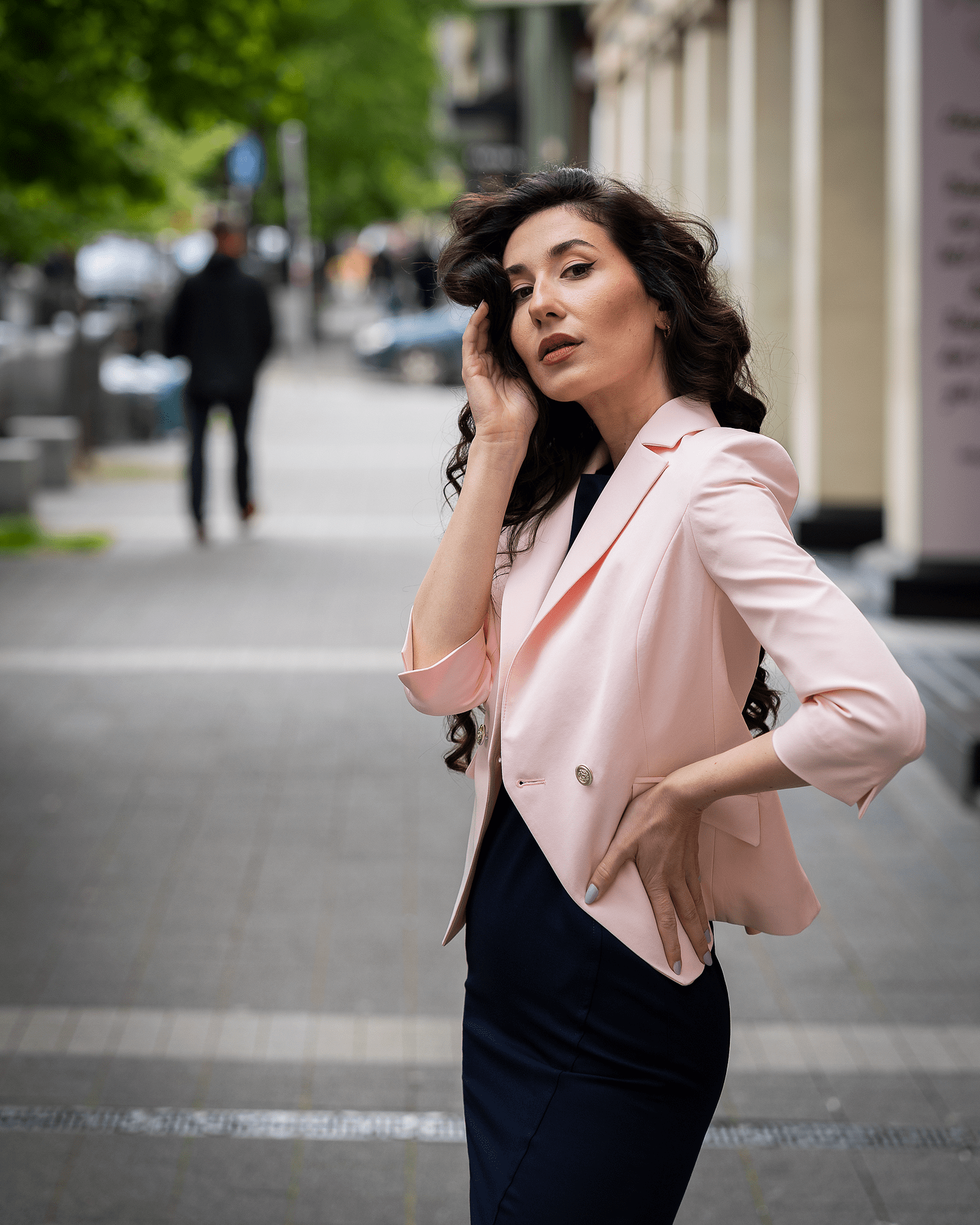 Класическо вталено сако, тъмносиньо