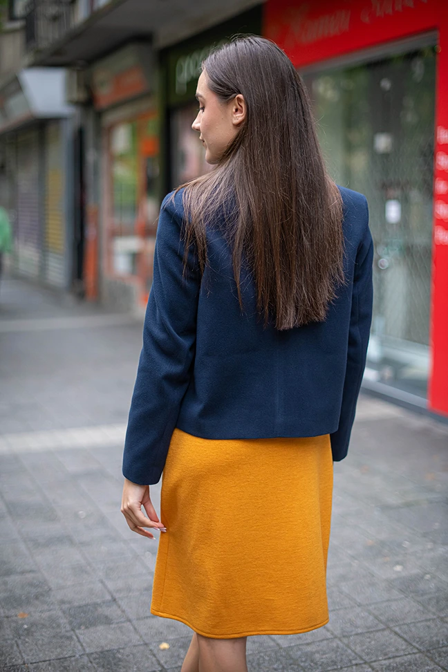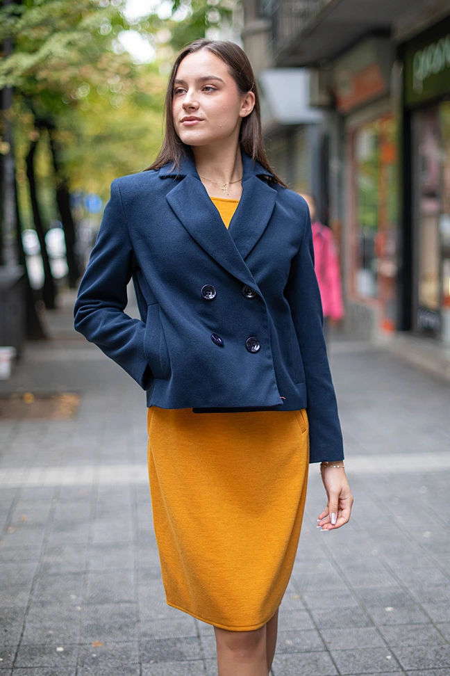Късо дамско палто, цвят горчица – вълнено палто с елегантна линия
