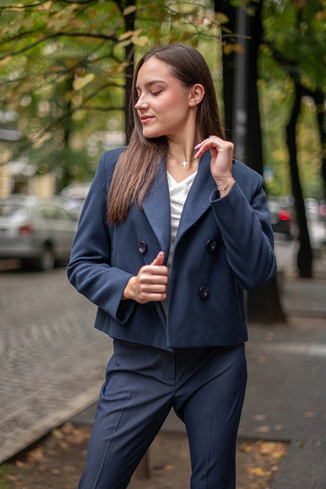 127,31 € / 249,00 лв.Късо дамско палто с двуредно закопчаване
