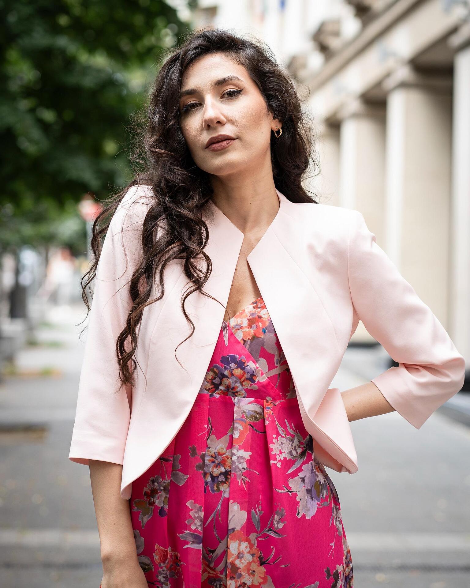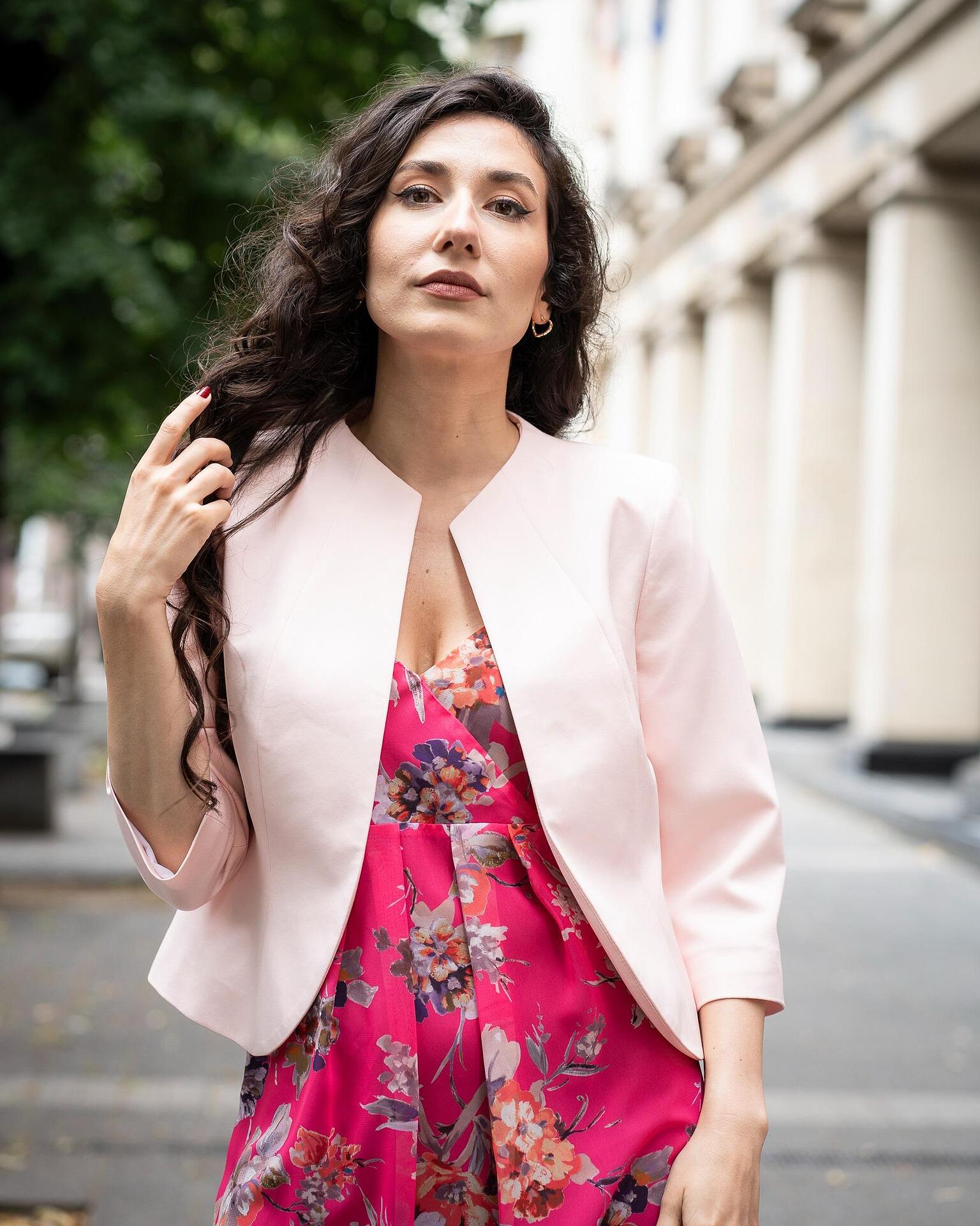 Дамски костюм от сако с едно копче и вталена женствена рокля
