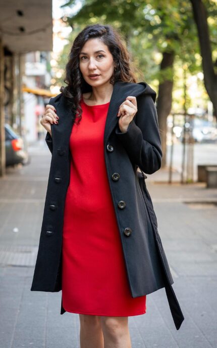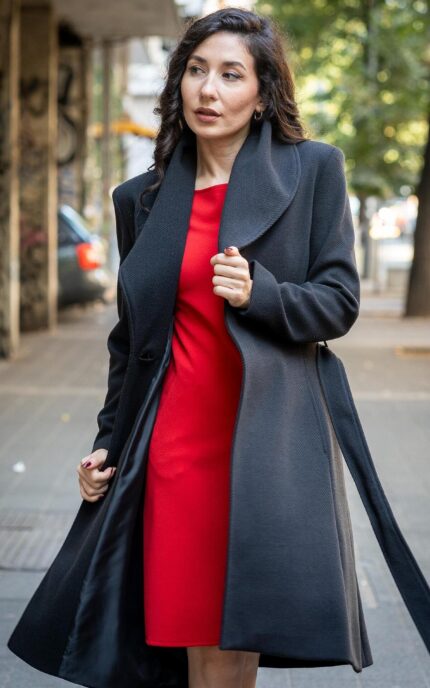 Комбинация от палто с подвижен шал и рокля с джобове и трапецовиден силует