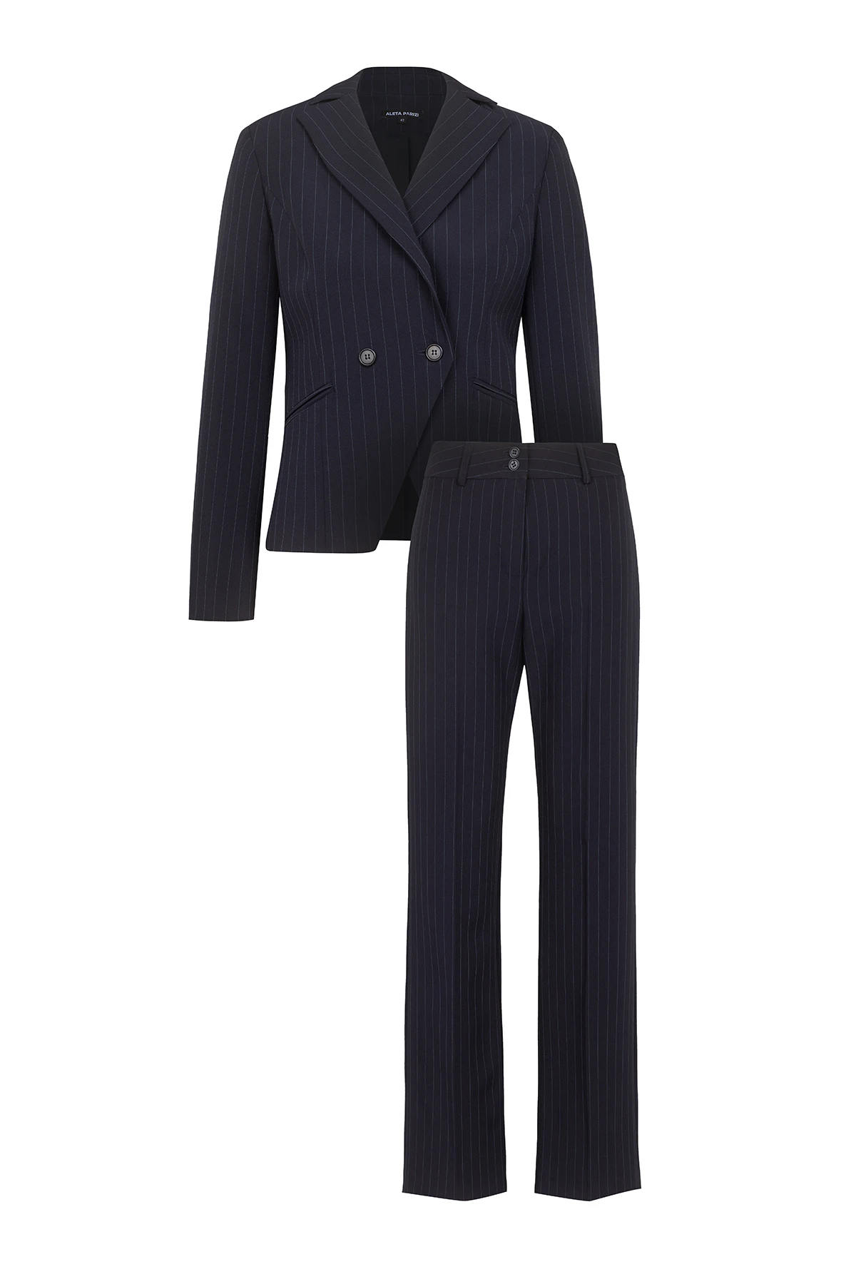 - Костюм от двуредно дамско сако и панталон с широк крачол