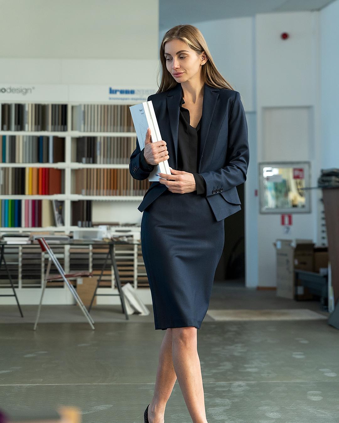 Дамски костюм от Женствено късо болеро и класическа права пола