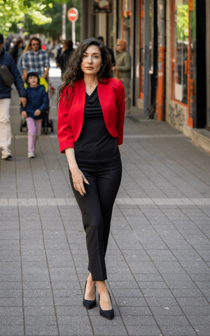Дамски костюм от женствено късо болеро и тесен дамски панталон