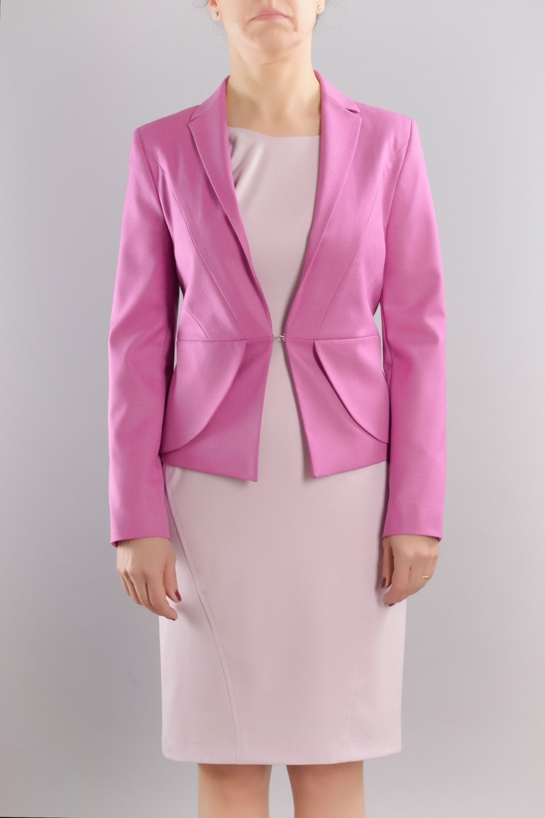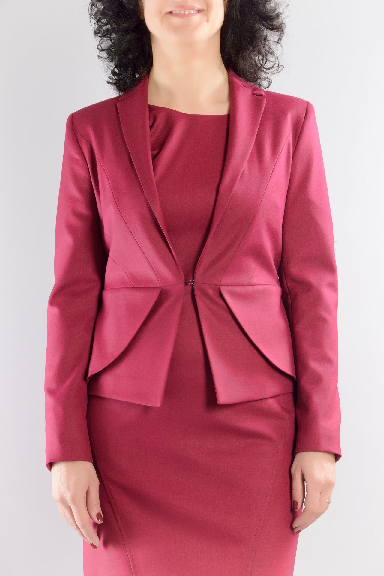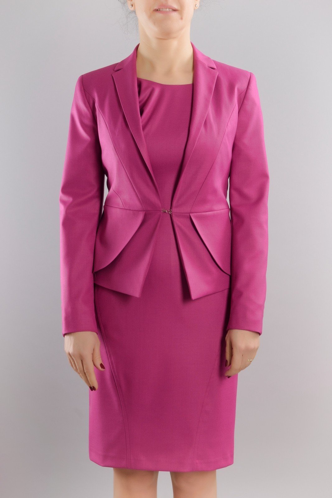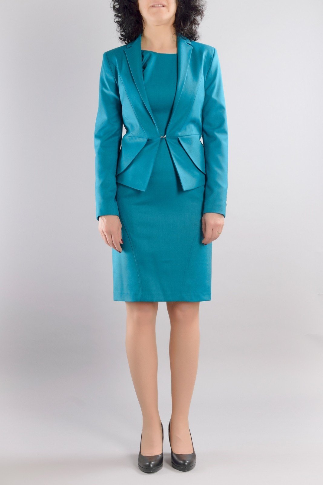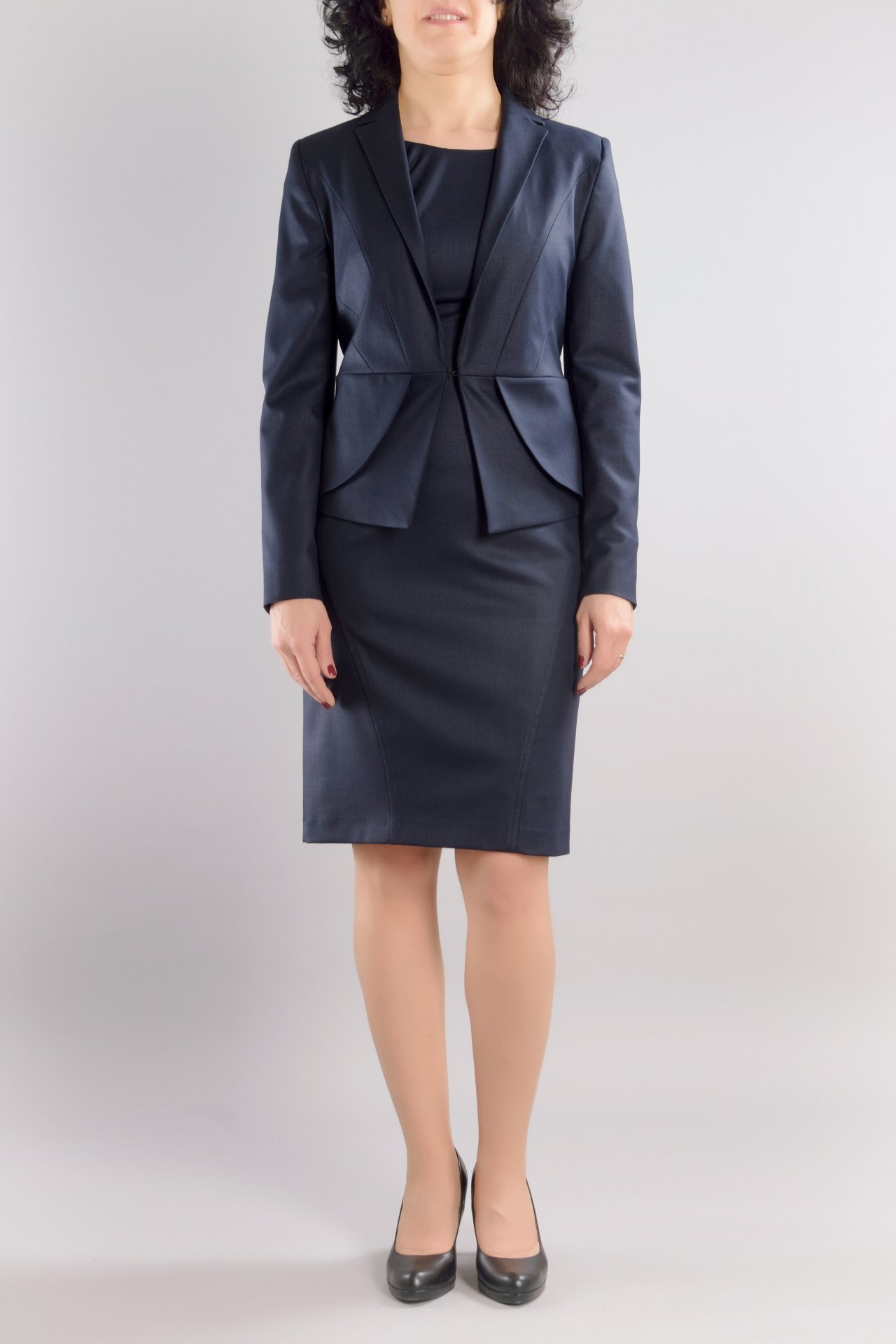 - Костюм от вталено сако със срязване в талията, с декоративни платки,модел 164-4 и вталена женствена рокля, с асиметрични чупки на деколтето, модел 5015-4.