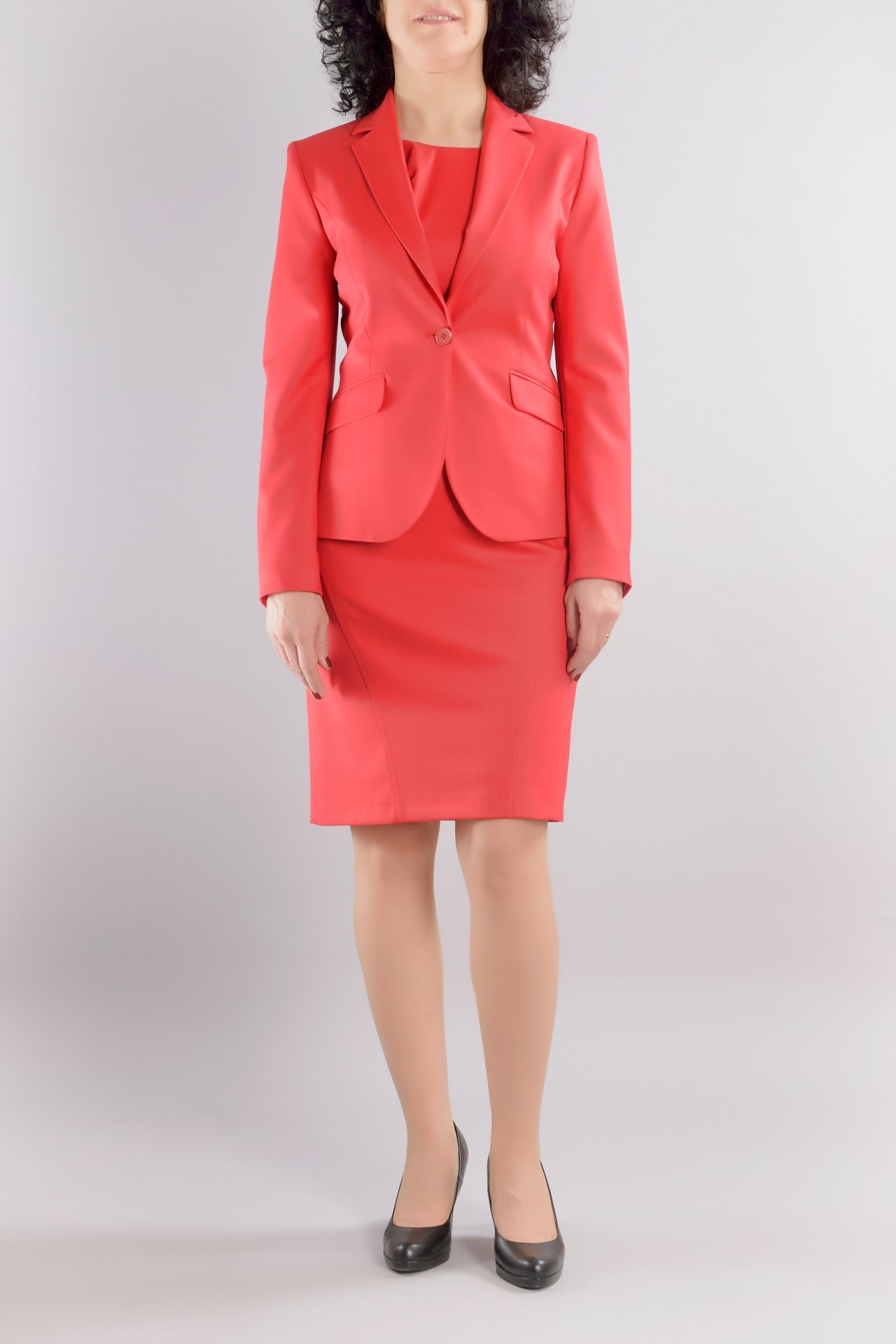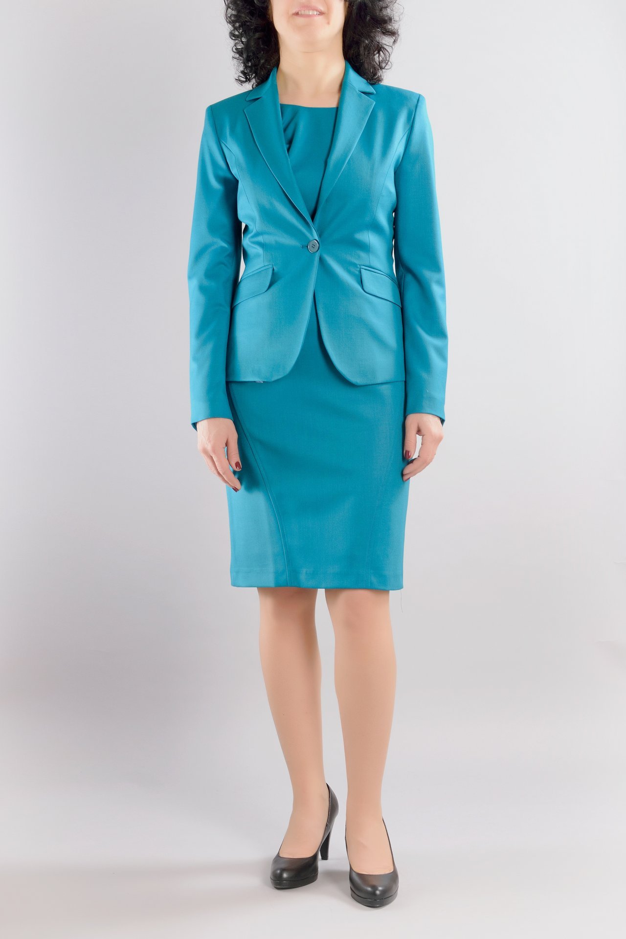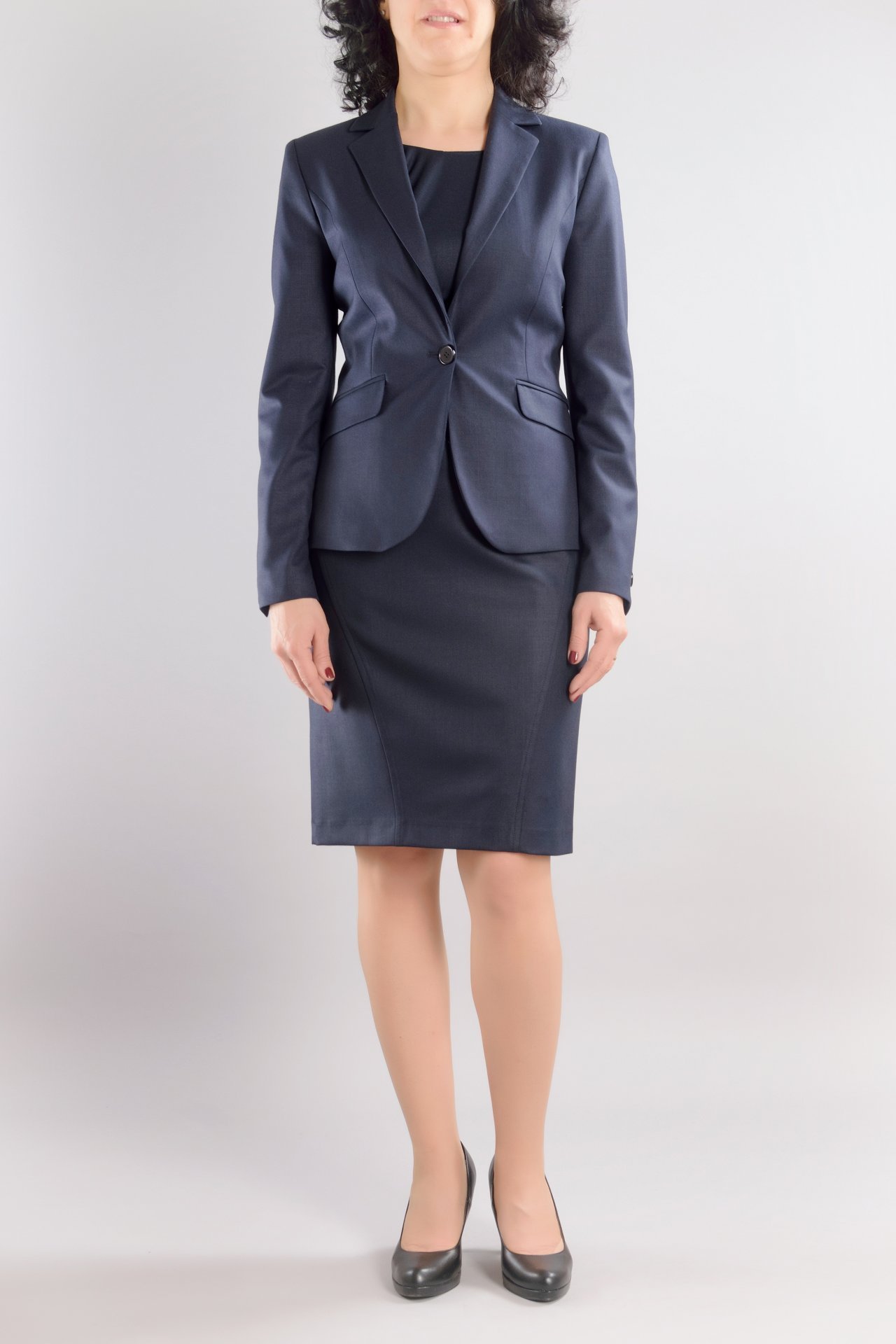 Дамски костюм от сако с едно копче и вталена женствена рокля