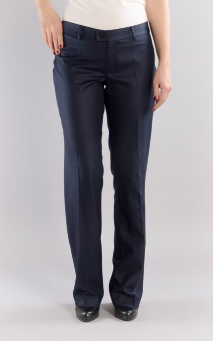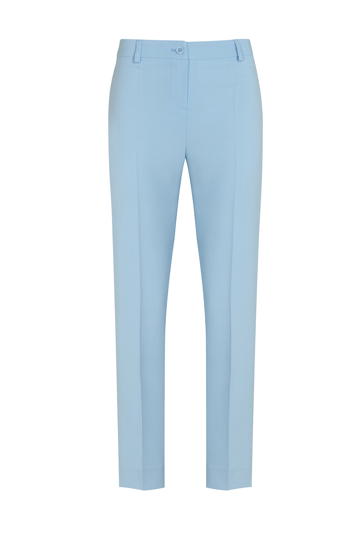 Този модел е олицетворение на изтънченост и лекота. Светлосиният цвят внася свежест във визията, като същевременно запазва професионалното излъчване. Перфектен за пролетно-летния сезон, този тесен панталон е задължително попълнение за гардероба на всяка елегантна дама.