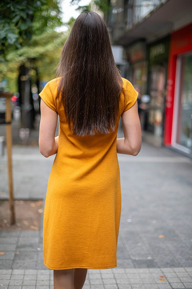 - Ретро рокля с джобове и малка поло яка, с трапецовиден силует, от топло зимно трико, модел 5047 R20