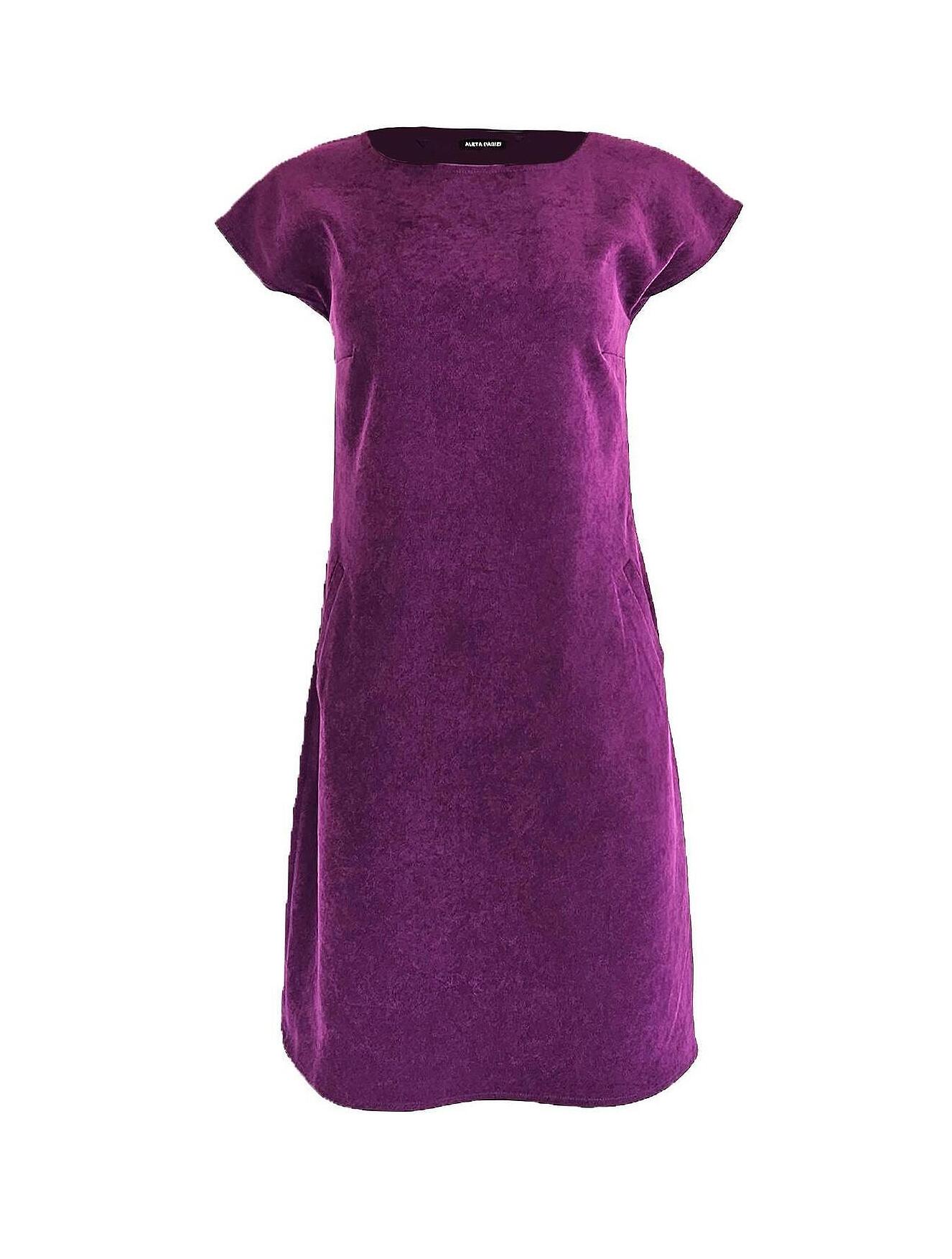 - Рокля с джобове и трапецовиден силует от трико с щампа, модел 5047-R15 (лилаво рипс)