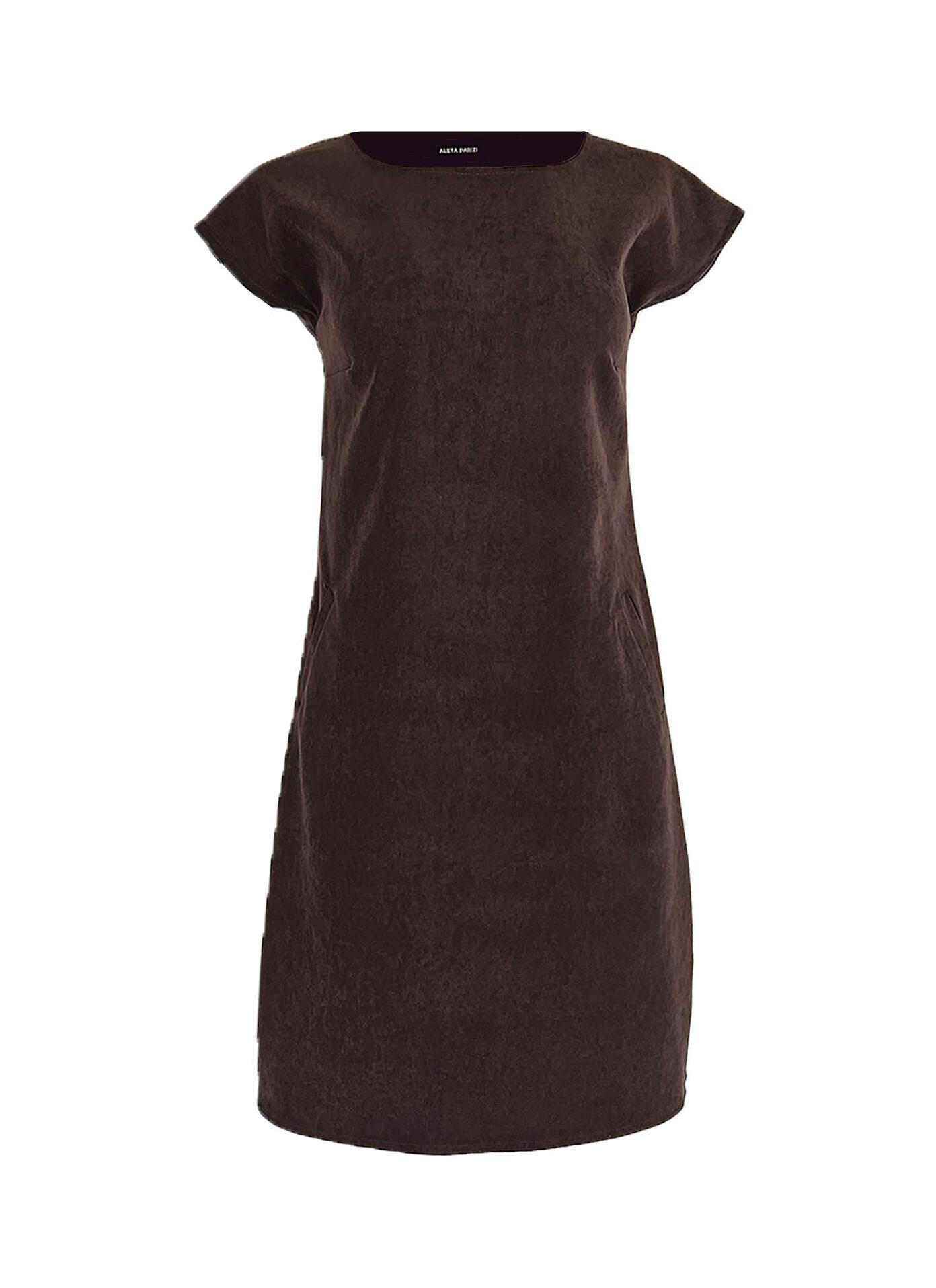• Рокля с джобове и трапецовиден силует от трико с щампа, модел 5047-R16 (кафяво рипс)