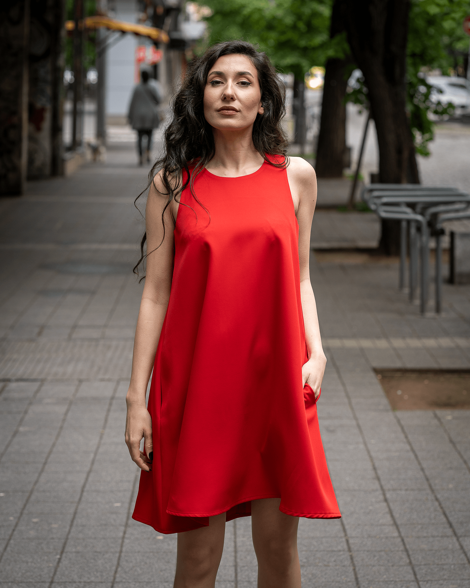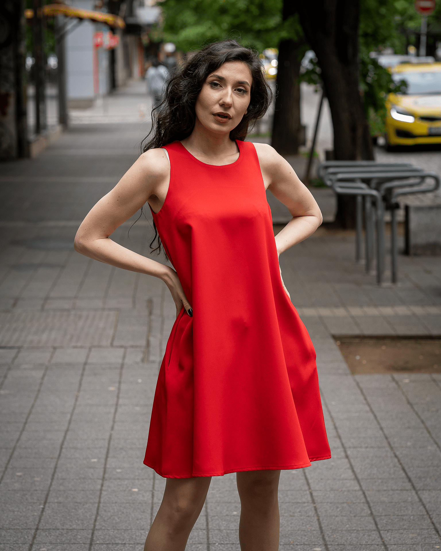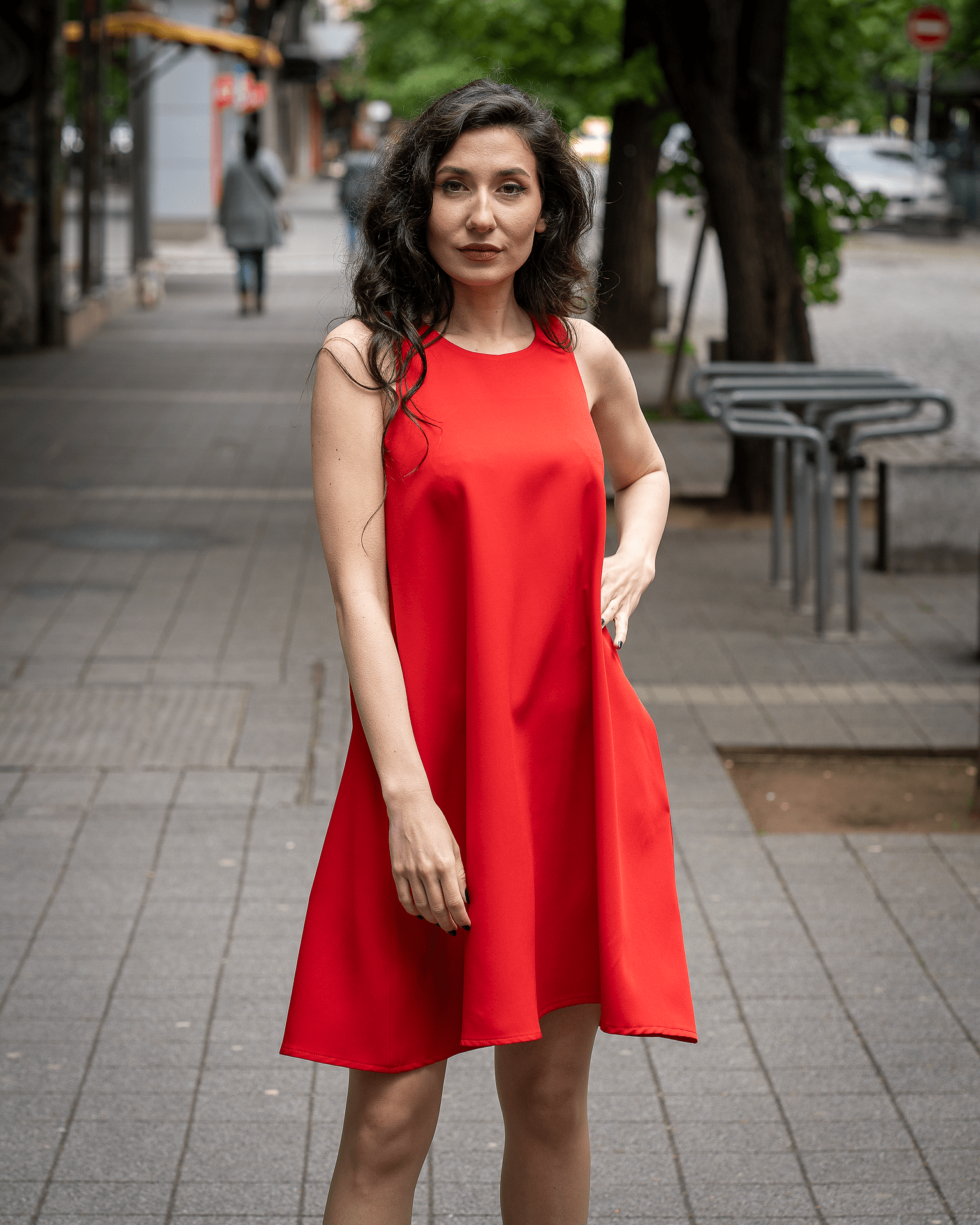 - Свободна романтична рокля с презрамки и клоширан силует,