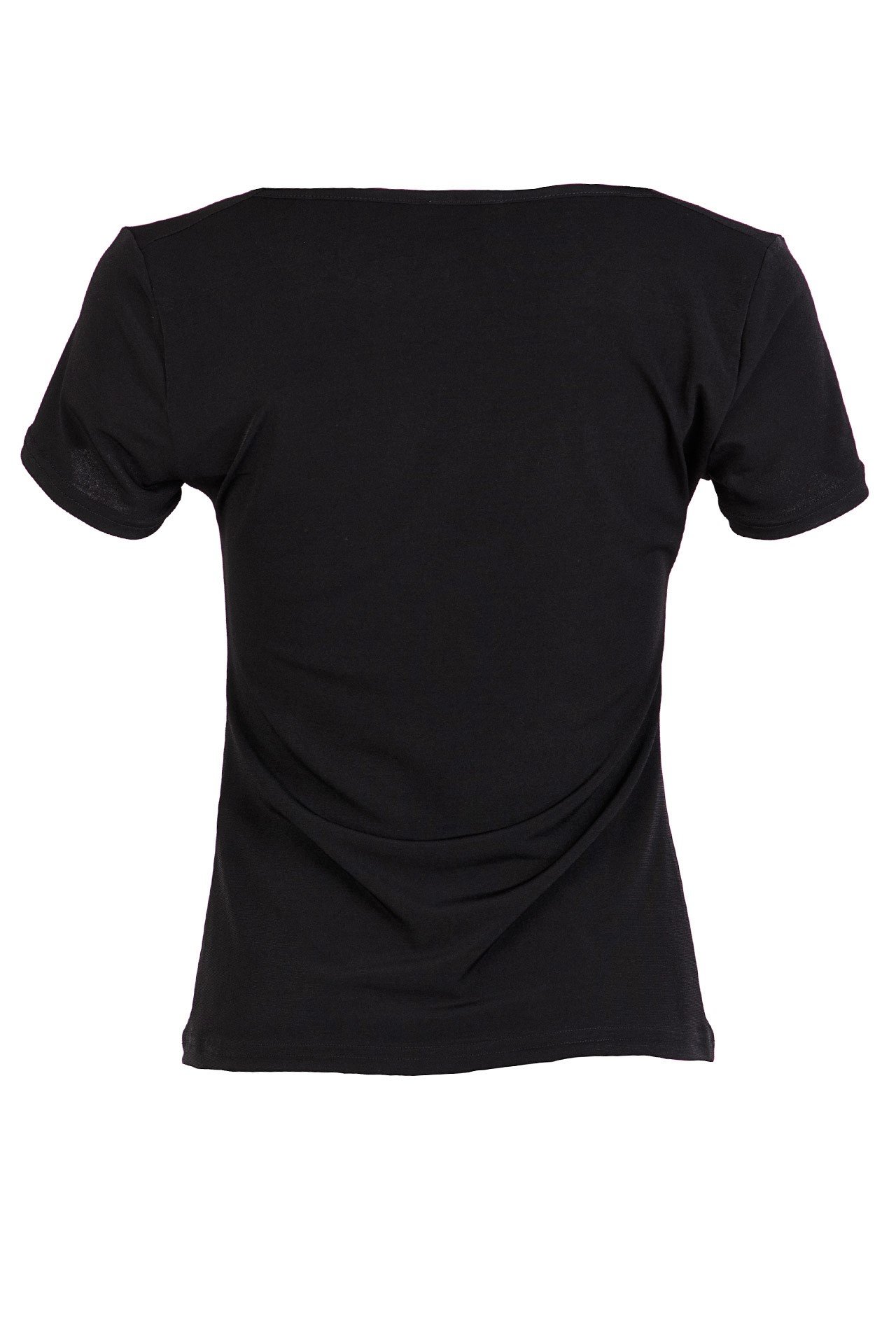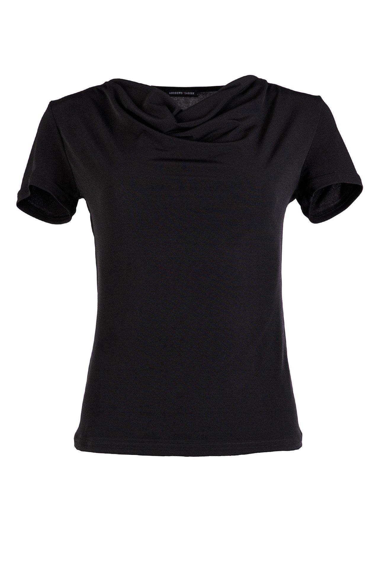 Трикотажна дамска блуза с къс ръкав и „гръцко” деколте